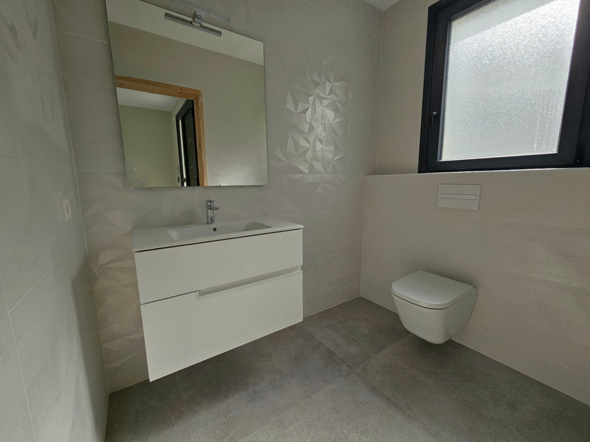 Discover this bright and modern villa in Jávea, a short drive from the beach and all amenities. Upon arriving at the property, we have the option to enter from two streets; from the lower street, we access a covered parking area for one vehicle and open parking for two, and from the upper street, parking for one vehicle with flat access to the house. Upon entering the villa, we are greeted by a hall, perfect for welcoming our guests. A bright living-dining room, leading out to the terraces and the pool. The spacious kitchen is open concept with an island and an adjacent laundry/storage room with access from the parking area. The resting area consists of three bedrooms; a large master bedroom with a built-in wardrobe, en-suite bathroom with shower, and access to the terrace and pool, two double bedrooms with built-in wardrobes that share a Jack & Jill bathroom with shower and a courtesy toilet. All bathrooms have wall-mounted toilets. Outside, we have a lovely Mediterranean-style garden that is easy to maintain, with automatic irrigation and fully lit. The pool is surrounded by open terraces, offering lovely views of the Montgó, and a covered terrace next to the living-dining room. The entire property is equipped with underfloor heating, air conditioning (hot/cold), and double-glazed windows.