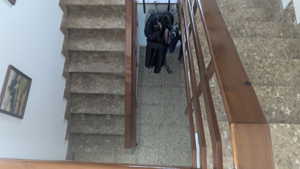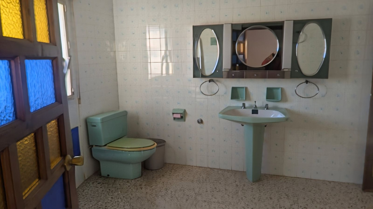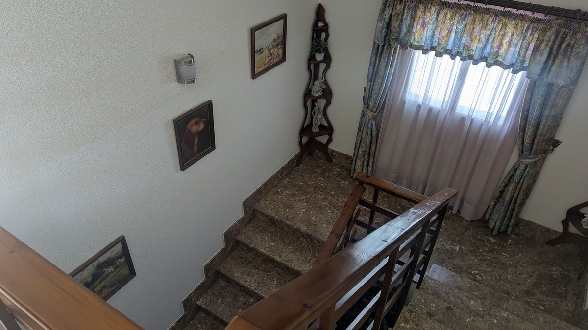 On the ground floor, you will find a cosy living room, an independent kitchen, two bedrooms and a full bathroom. The upper floor, accessed via a wide and comfortable staircase, features three bedrooms with built-in wardrobes and a second full bathroom — perfect for large families, guests, or a home office.