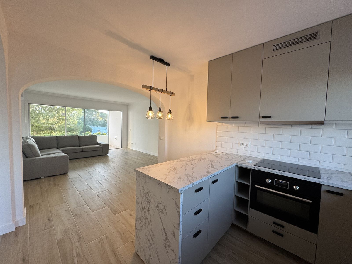 Bright and fully renovated 2-bedroom apartment with beautiful sea views, located in the well-known Miraflores Rancho B complex in Mijas Costa.