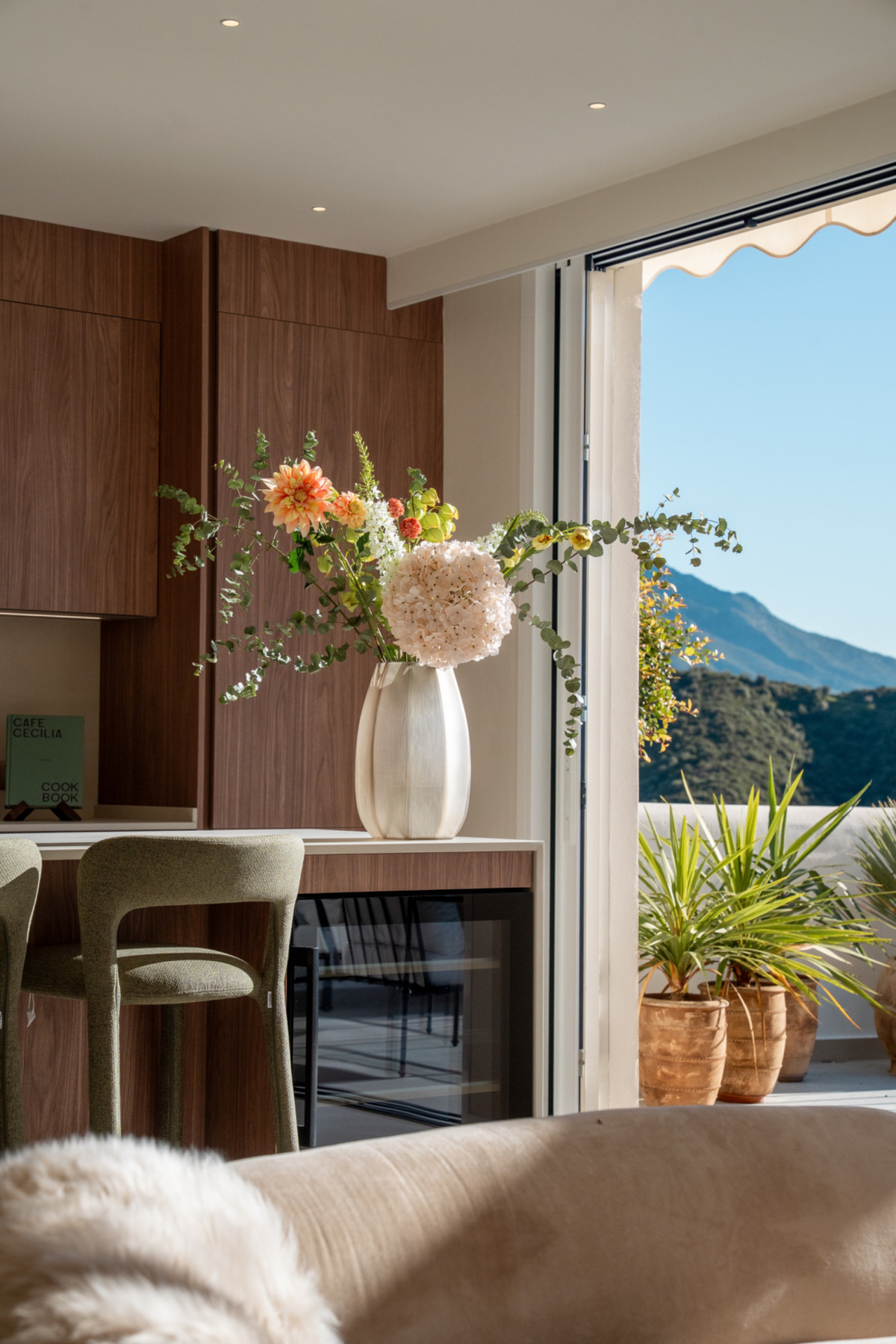 This south-facing residence enjoys all-day sunshine and uninterrupted open views stretching across the Mediterranean coastline, with the iconic La Concha mountain forming a spectacular backdrop.