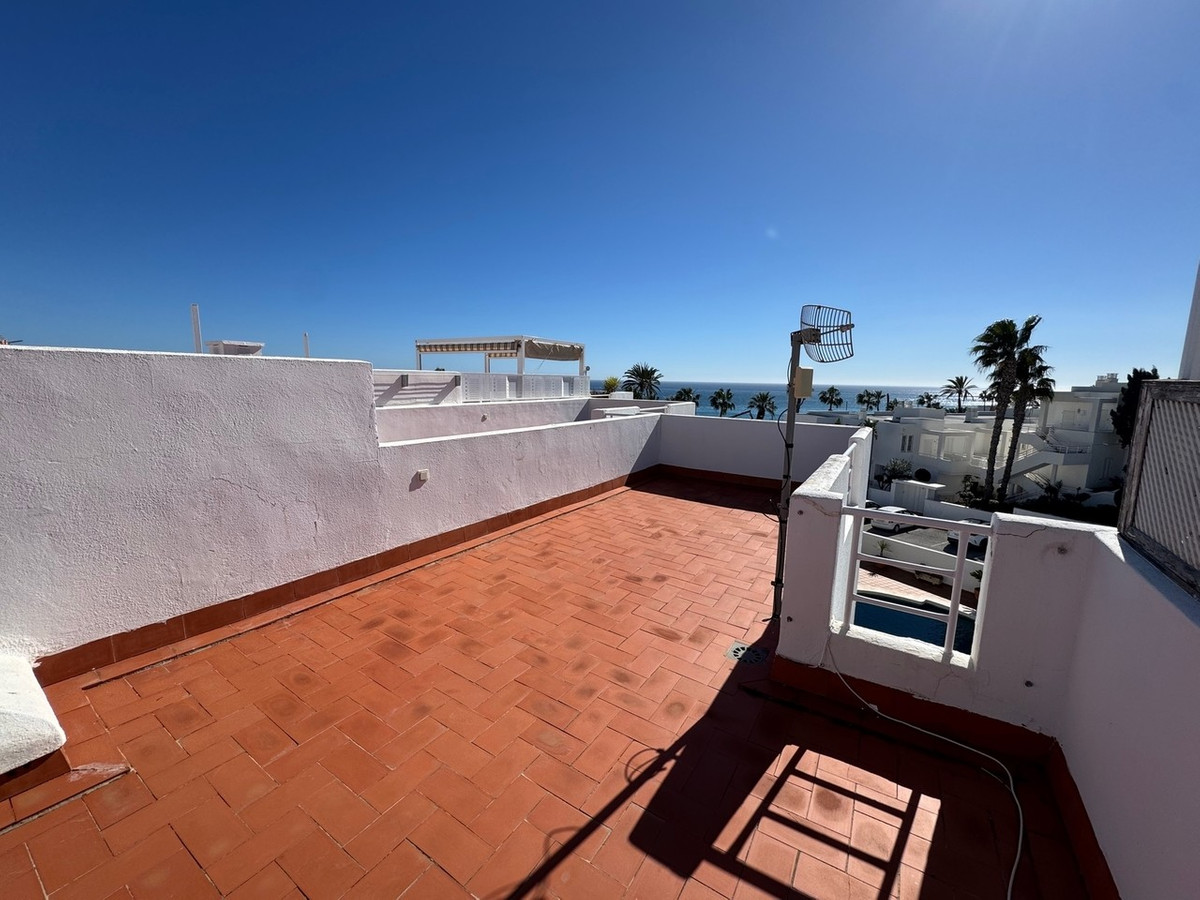 This is an exceptional opportunity to acquire a beautifully positioned two-storey townhouse within one of the most prestigious and highly sought-after developments on Mojácar Playa. Its enviable location places you just a short stroll from the stunning beaches of Mojácar Playa and the popular Parque Comercial, offering both convenience and lifestyle in equal measure. The property enjoys breathtaking sea views, with the added backdrop of the surrounding mountains, all best appreciated from the expansive private roof solarium. The home is set within a secure, immaculately maintained gated community featuring a communal swimming pool and allocated parking.