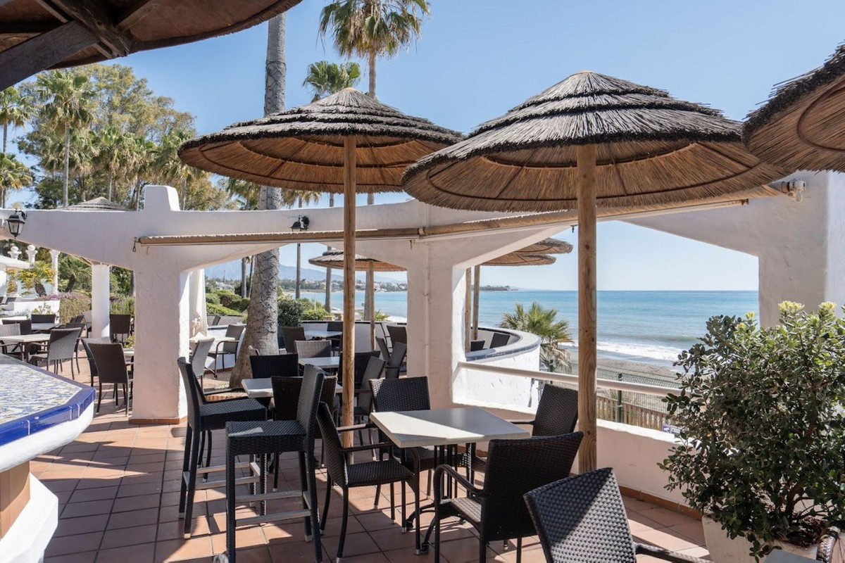 Dominion Beach is an established residential complex renowned for its distinctive Andalusian architecture and lush subtropical gardens, which create a serene, tropical setting. The complex boasts a range of first-class amenities, including three outdoor swimming pools, a children's pool and a wellness centre offering massage treatments. The beachfront communal terrace offers direct access to the sea, ideal for enjoying the Mediterranean climate, whilst the summer beach bar and full-service restaurant provide a relaxed dining experience by the sea. The gated community features 24-hour security for your peace of mind, a gym, a social area and a management office. For water sports enthusiasts, there is a private ramp to facilitate access to jet skis, water skiing and windsurfing. The area is well connected to shops, restaurants and playgrounds, making it an ideal choice for both families and professionals. With its peaceful surroundings, excellent amenities and prime location, this duplex penthouse offers a perfect combination of luxury and comfort in Estepona.