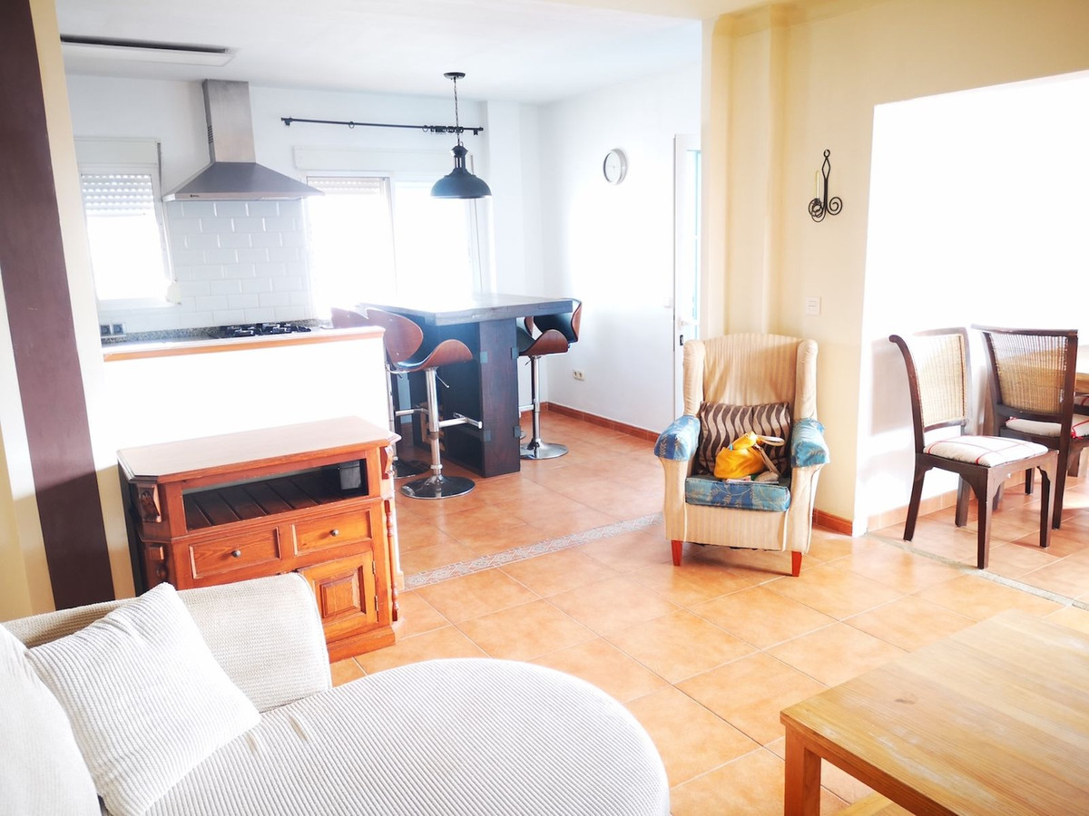 El Faro de Calaburras: Investment Opportunity. This is spacious traditional style two floor detached villa which has been cleverly divided into three separate properties, each with its own entrance. On the upper entry level, there is a two bedroom/two bathroom apartment with spacious lounge diner and open kitchen area, study/office and exterior steps reaching a lovely roof terrace. From this apartment on the outside, there is a metal spiral staircase which reaches one side of the garden. On this side of the garden, and on the lower floor of the villa, we find a one bedroom apartment, lounge, bathroom, small kitchen and private gated covered terrace. On the other side of the garden (private, separated and fenced), we have a further one bedroom apartment with lounge, kitchen, bedroom and bathroom.