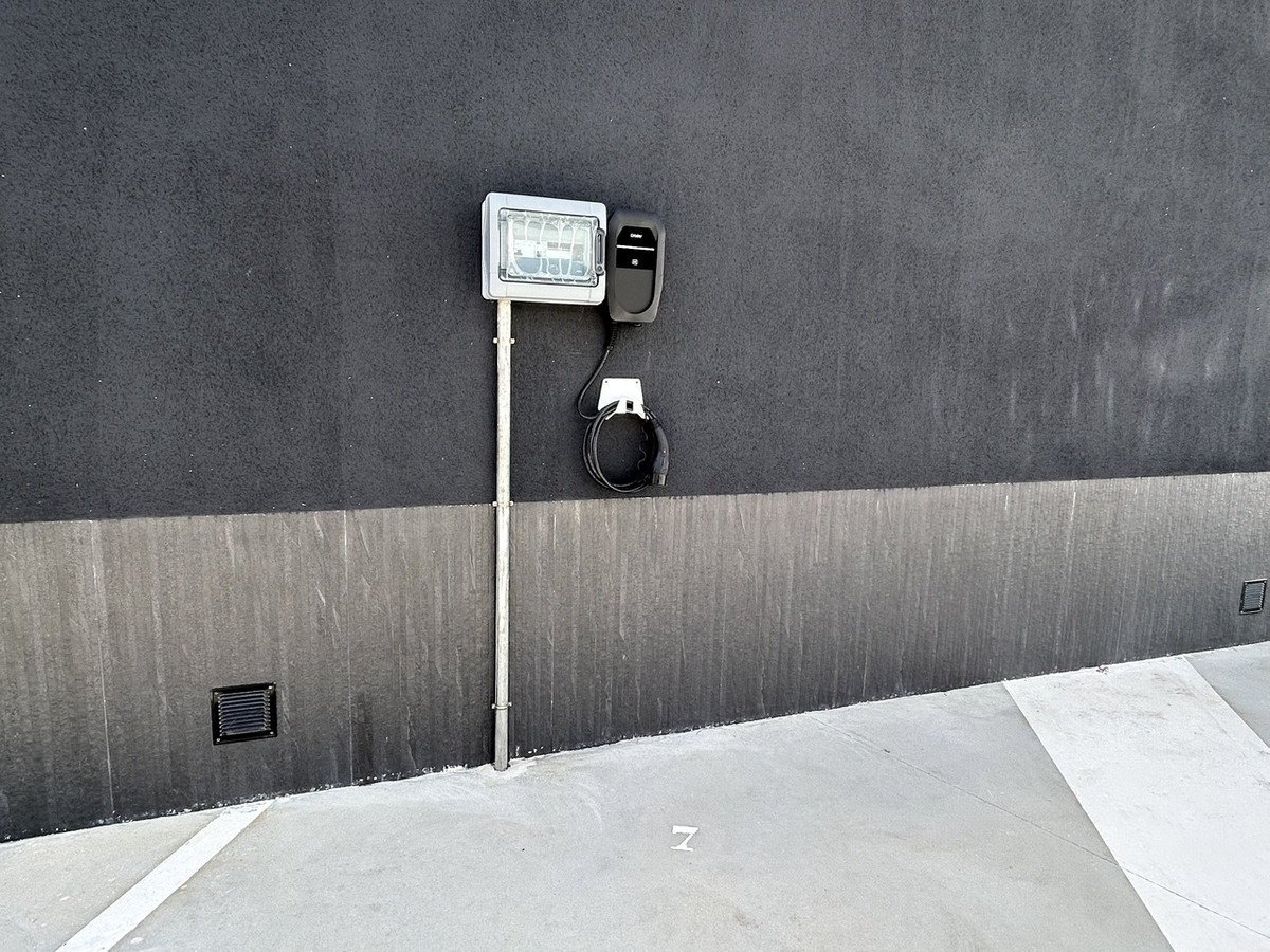 Residents enjoy access to a saltwater communal pool, offering a more natural and gentle swimming experience. The property also includes a private parking space with its own electric car charger, providing security, convenience, and future-ready living.