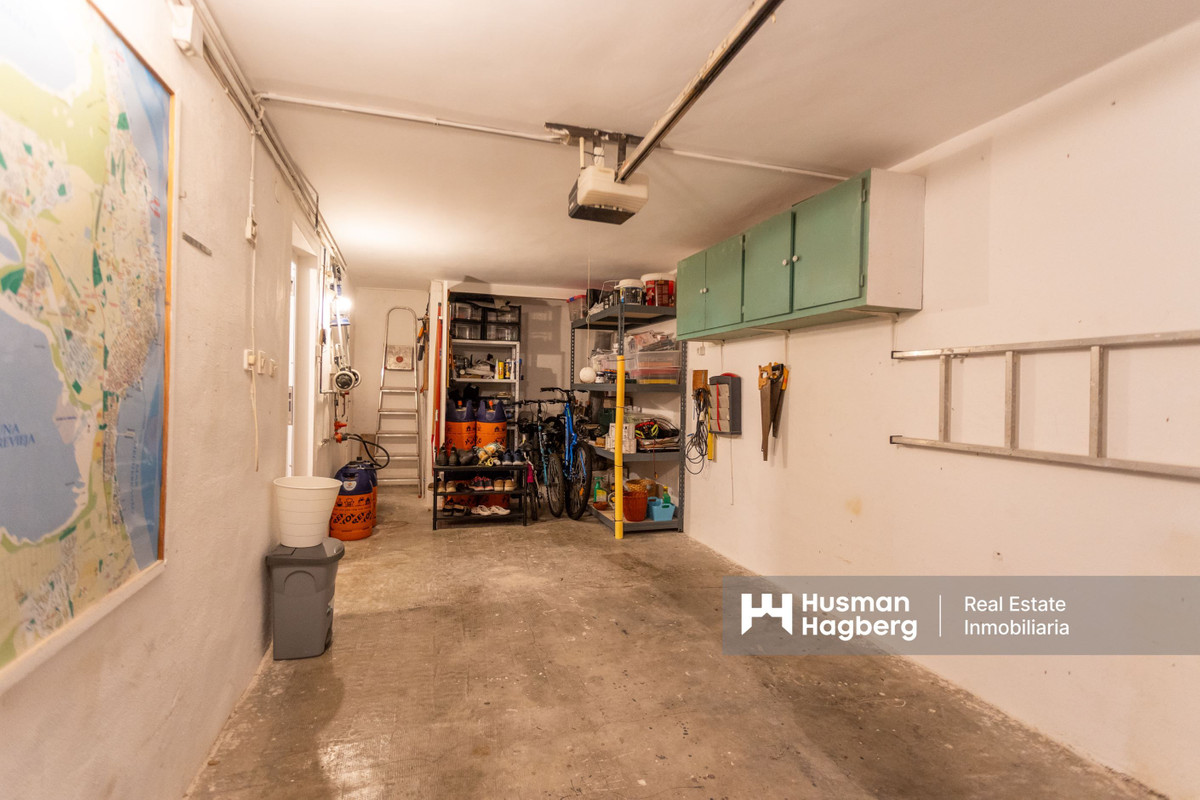 In the basement you will find another spacious bedroom, a bathroom with toilet and shower, laundry room and garage with storage. This part of the house provides flexibility and can be used as a guest area, teenage section or hobby area. All rooms are equipped with their own AC.