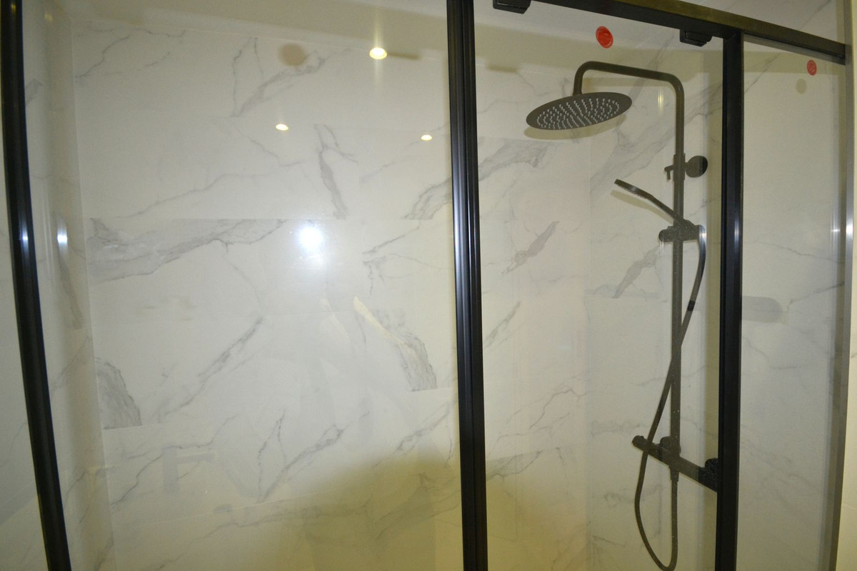 The layout is practical and comfortable. The separate kitchen flows into a utility room with window ventilation, while the living room opens directly onto the covered terrace and private garden, creating a seamless indoor-outdoor living experience.