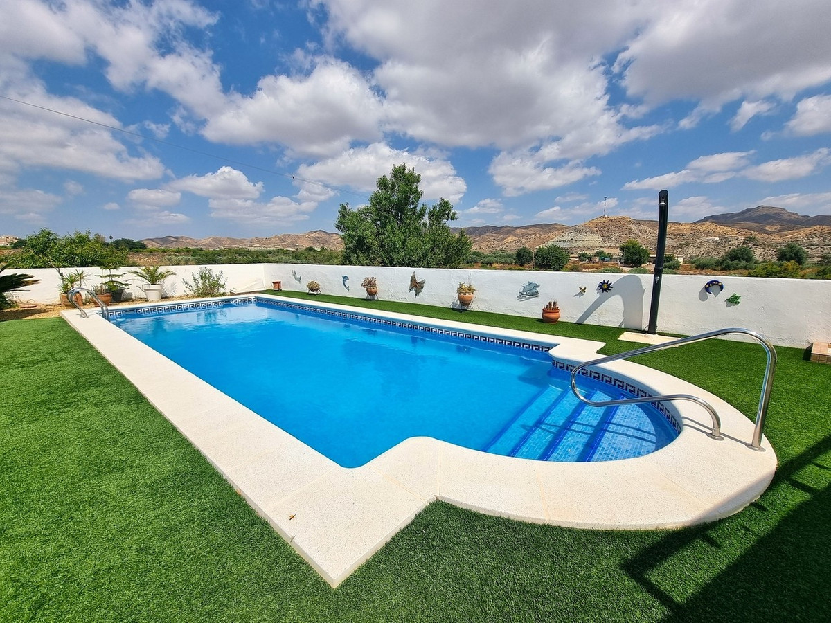 Set in a peaceful countryside location just outside Arboleas village in Los Menchones, this beautifully maintained 4-bedroom, 2-bathroom villa offers the perfect blend of space, comfort. With a private swimming pool, sunroom, extended-ceiling lounge, single garage, and carport, this property is ideal for relaxed family living or a tranquil escape from the everyday.