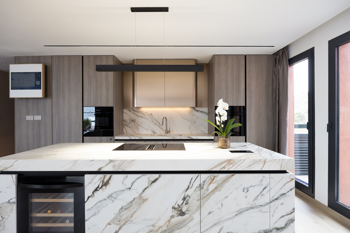 This exceptional residence offers an exquisite blend of design, comfort, and panoramic beauty. Spanning a built area of 145 m², the apartment features two private terraces totalling 45 m², each thoughtfully designed with lush greenery, an automatic irrigation system, and a private jacuzzi. The 270° views embrace the sea, coastline, and surrounding hills — on clear days, even Gibraltar and the distant coast of Africa grace the horizon. A private 14 m² garage with direct elevator access ensures convenience and exclusivity at every turn.