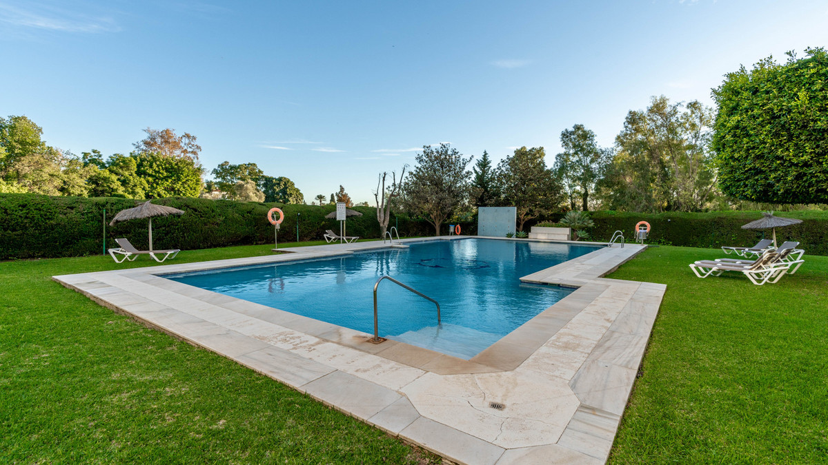 The gated community offers exclusive amenities, including a beautifully maintained communal swimming pool. Its prime location ensures unparalleled convenience, situated near the vibrant Guadalmina Centro Commercial, San Pedro de Alcántara, pristine beaches, world-class golf courses, and top-rated schools. The property also includes its own secure parking for added convenience.