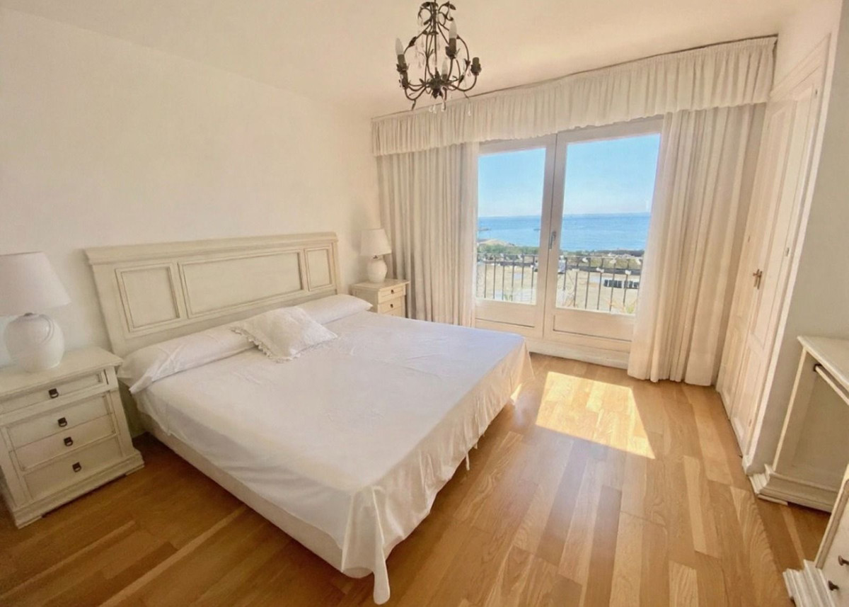 Well-designed and spacious townhouse for sale in Belgravia Club – one of Estepona's most sought-after frontline developments, offering truly spectacular and unobstructed sea views from several bedrooms and terraces. Here you live right by the sea and enjoy a separate guest studio, providing additional living space completely independent from the main home. It also offers a communal pool, beautifully maintained gardens, and an exclusive clubhouse with four guest rooms that residents can book. Rentals are permitted, making the property ideal both as a home and as an investment.