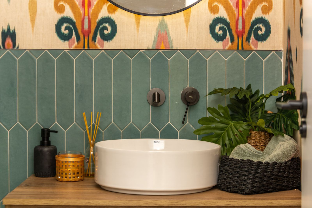 Guest Bathroom: Stylish bathroom with walk-in shower, his and her vanities, wc and storage.