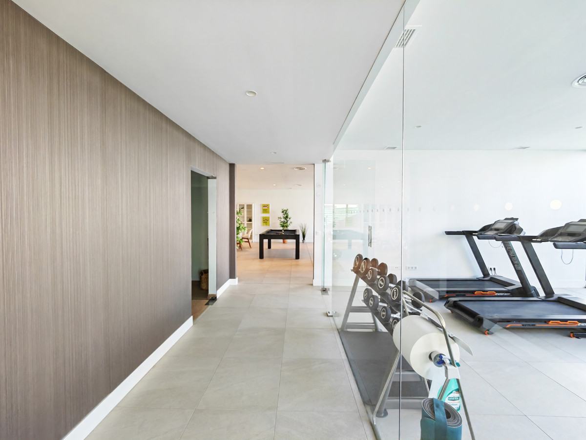 Apartment for sale in , Manilva with 2 bedrooms, 2 bathrooms and with orientation south, with communal swimming pool and private garage (1 parking spaces). Regarding property dimensions, it has 87 m² built and 29 m² terrace. Has the following facilities amenities near, transport near, air conditioning, fully fitted kitchen, utility room, sauna, storage room, gym, alarm, security entrance, double glazing, private terrace, kitchen equipped, sea view, laundry room, internet - wi-fi, covered terrace, electric blinds, fitted wardrobes, gated community, lift, close to sea / beach, close to golf, uncovered terrace, games room, glass doors, balcony, optional furniture, spa, wheelchair-accessible, excellent condition, close to shops, close to town, close to port, close to schools, surveillance cameras and pets allowed.