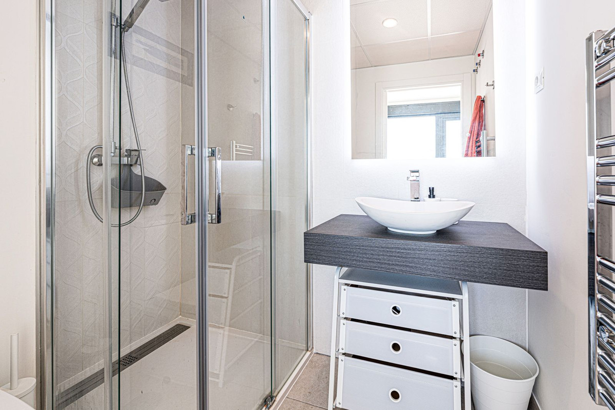 The first floor offers space for three bedrooms - a master bedroom with en-suite bathroom and two further bedrooms with a shared bathroom. A fourth bedroom is located on the top floor, including a bathroom and walk-in wardrobe. From here, you can access the roof terrace, which offers spectacular views of the sea and the whole coast.