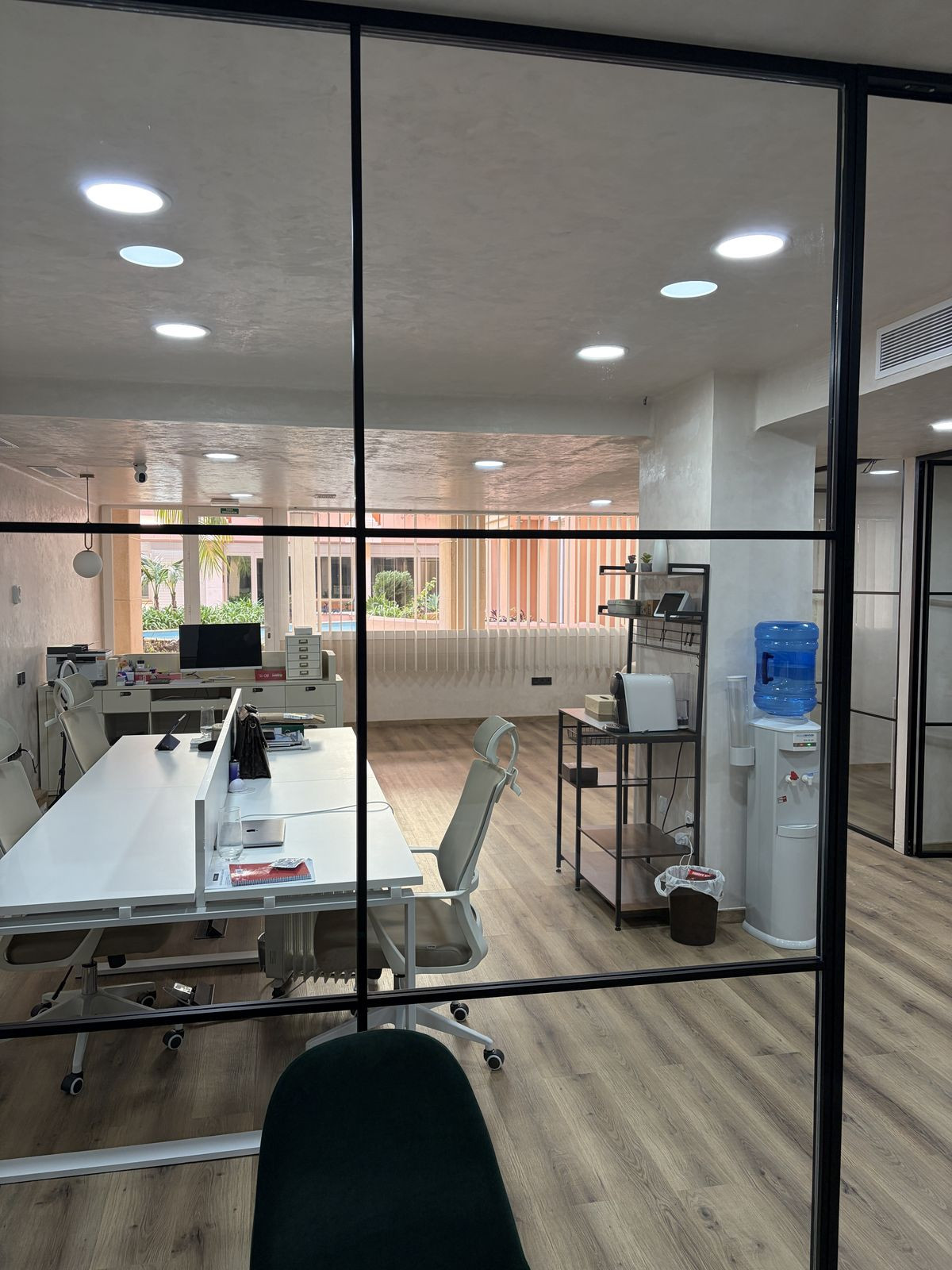 This office of approximately 160 sqm, located in Magna Marbella, was fully renovated just one year ago in a Scandinavian minimalist style, creating a modern and professional environment that feels almost brand new.