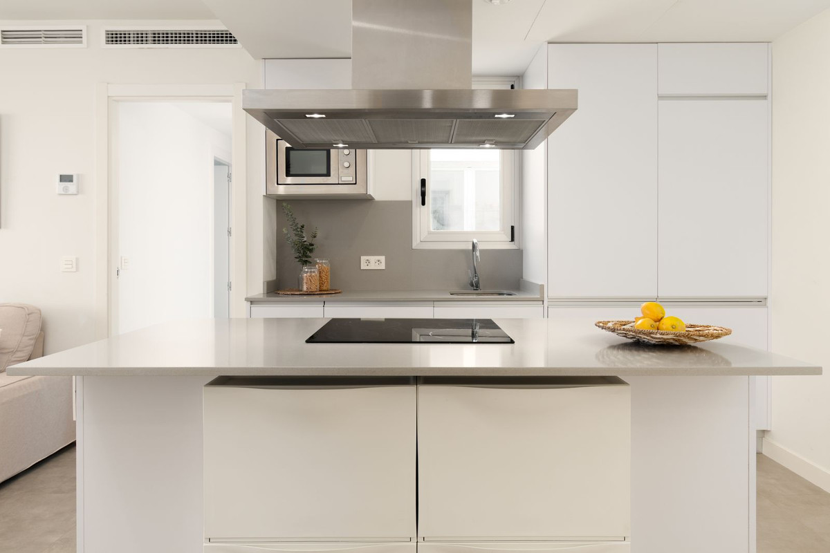 Open-plan kitchen connected to the living room. Spacious west facing afternoon/evening sun terrace with access from the living room and two bedrooms. Private rooftop terrace with sun all day with stairs leading up from the main terrace.