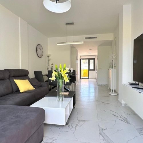 A penthouse is for sale in the Balcón de Finestrat area, located in a modern residential complex Alegria Village.One of the main benefits of the property is **a spacious private solarium on the roof**, equipped with BBQ and relaxation area. It is the perfect place to enjoy the Mediterranean climate and the open views of Finestrat and Benidorm.The residential complex offers a comfortable infrastructure for residents: **communal pool, well-kept gardens, playground, sauna, and gym**. The price also includes **a private parking space**.The complex is located in a quiet residential area with easy access to all necessary infrastructure. Just a few minutes away is the La Marina Shopping Center with shops, restaurants, and services. The Puig Campana Golf course is also nearby.Benidorm beaches can be reached in approximately **7–10 minutes by car**, making this property an excellent option for both living and investing on the Costa Blanca coast.