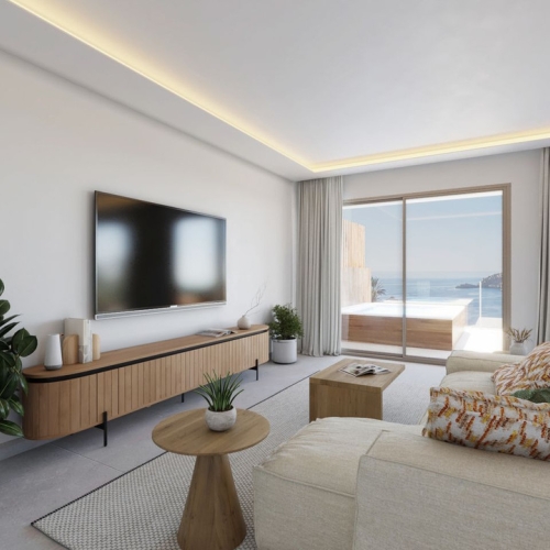 The home features generous interior spaces combined with private terraces designed to enjoy Almuñécar's privileged climate all year round. The main living room opens onto the private terrace and swimming pool, creating visual continuity between interior and exterior spaces and providing a pleasant open-air living experience.
