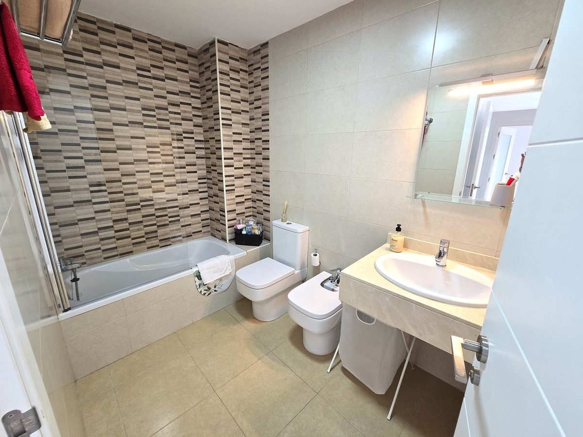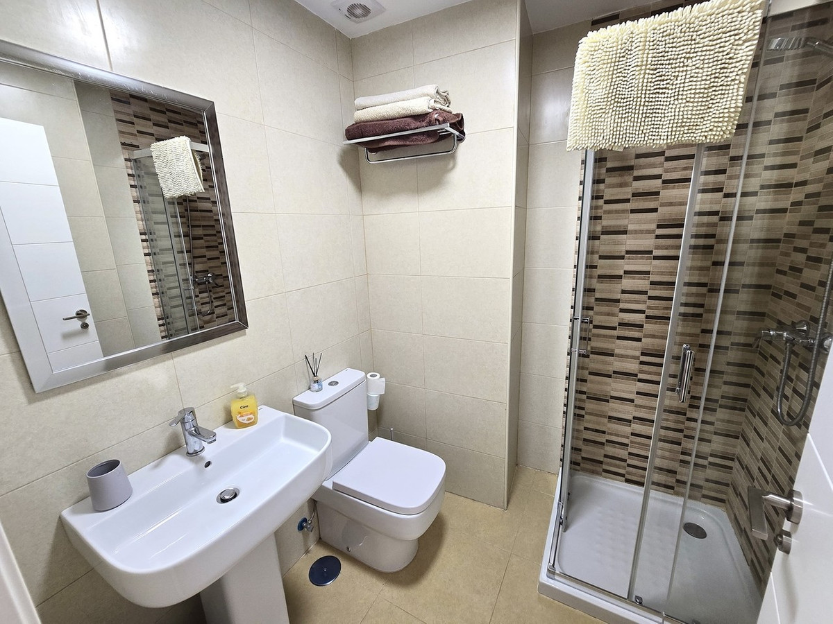 At the heart of the home is the bright and welcoming living area. The lounge provides a comfortable space for relaxing, entertaining, or enjoying quiet evenings indoors. Large doors open directly onto the apartment’s private terrace, seamlessly connecting indoor and outdoor living. This outdoor space is ideal for al fresco dining, morning coffee, or simply unwinding while enjoying the warm Spanish climate. With access from both the lounge and the main bedroom, the terrace becomes a natural extension of the living space.