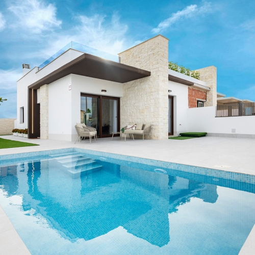 These excellent independent villas offer excellent value for money, all with an independent plot with parking space, private pool of 5 x 3 m. or 6 x 3 m., careful design with new materials inside, outside and facade, and a magnificent distribution: