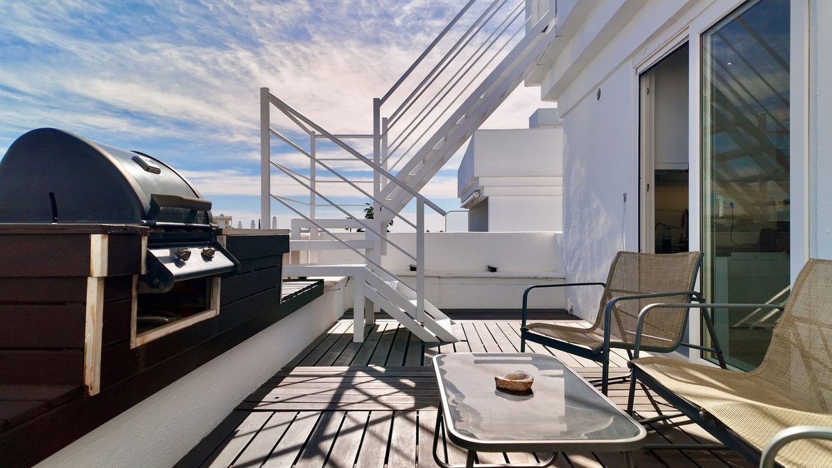 A fully renovated duplex penthouse with panoramic sea views, La Concha and Gibraltar for under €400,000 is a rare opportunity in Marbella.