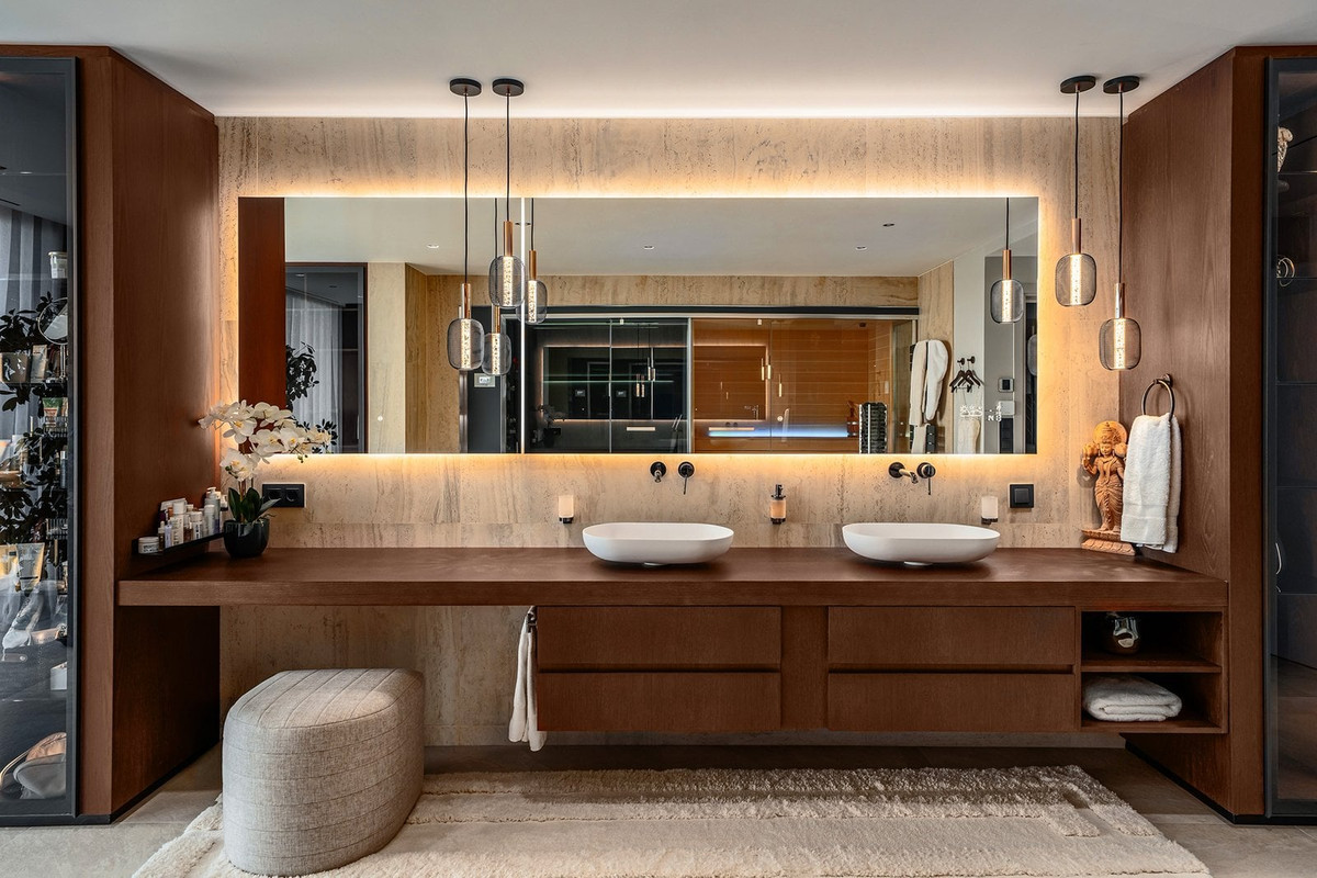 At the heart of the house is a thoughtfully designed living area, where natural light and selected materials create an elegant and relaxing atmosphere. The custom-designed kitchen, equipped with Gaggenau appliances, seamlessly integrates with the dining and living areas, ideal for both daily living and entertaining guests.
