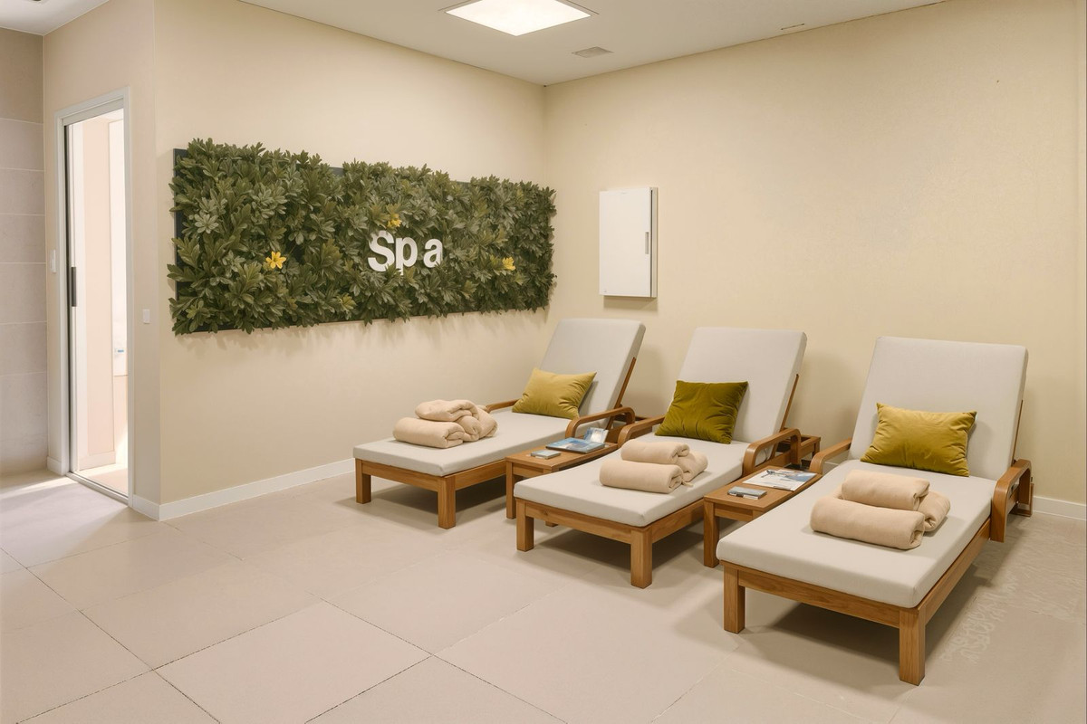 In addition to your private outdoor spaces, you will enjoy access to Cala Serena Village's shared facilities: a large pool surrounded by lush greenery, a fully equipped gym, a spa with two types of saunas and a jacuzzi,