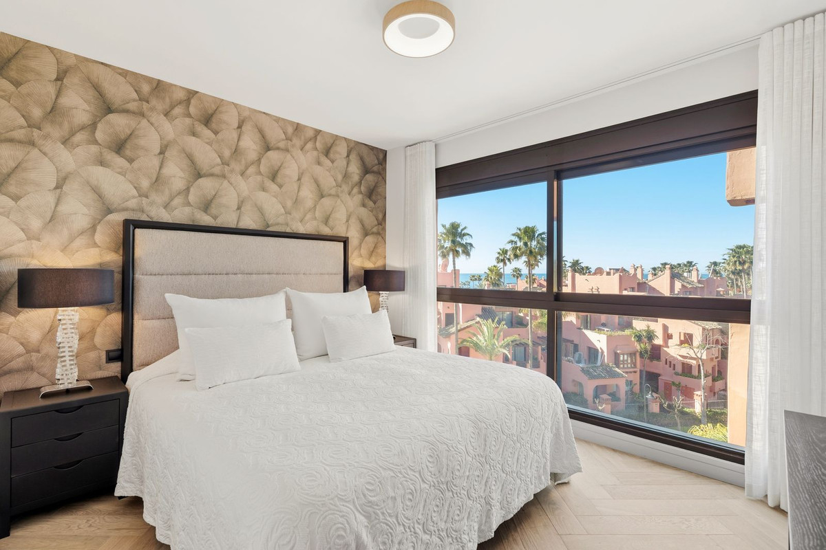 Luxury redefined by the sea. Set within the secure gates of Las Salinas, this exquisite newly renovated beachside duplex penthouse with panoramic sea views spans 156 m² of bright interiors complemented by 65 m² of private terraces. The inviting living area opens toward a south‑facing terrace where glass doors frame panoramic sea views and the rhythm of the waves set the tone for the day, forming an effortless connection to the coast. Upstairs, the expansive rooftop terrace becomes your private retreat in the sky — the perfect place to share meals with friends, unwind beneath the stars, or simply take in endlessly shifting views of the sea and mountains.