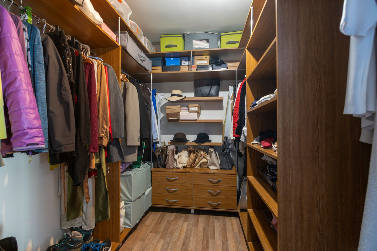 The first floor comprises two bedrooms, including a spacious master suite with a large walk-in wardrobe and a bathroom featuring a hydromassage bathtub and a separate shower.