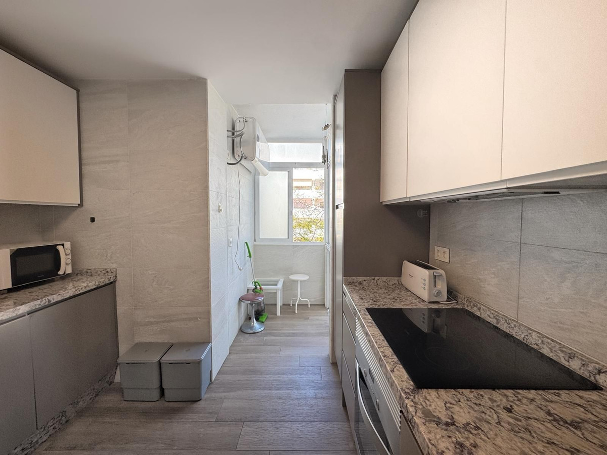 The kitchen is independent, fully equipped, and also includes a practical laundry area. The apartment has been renovated in a contemporary style, offering a modern and welcoming atmosphere.