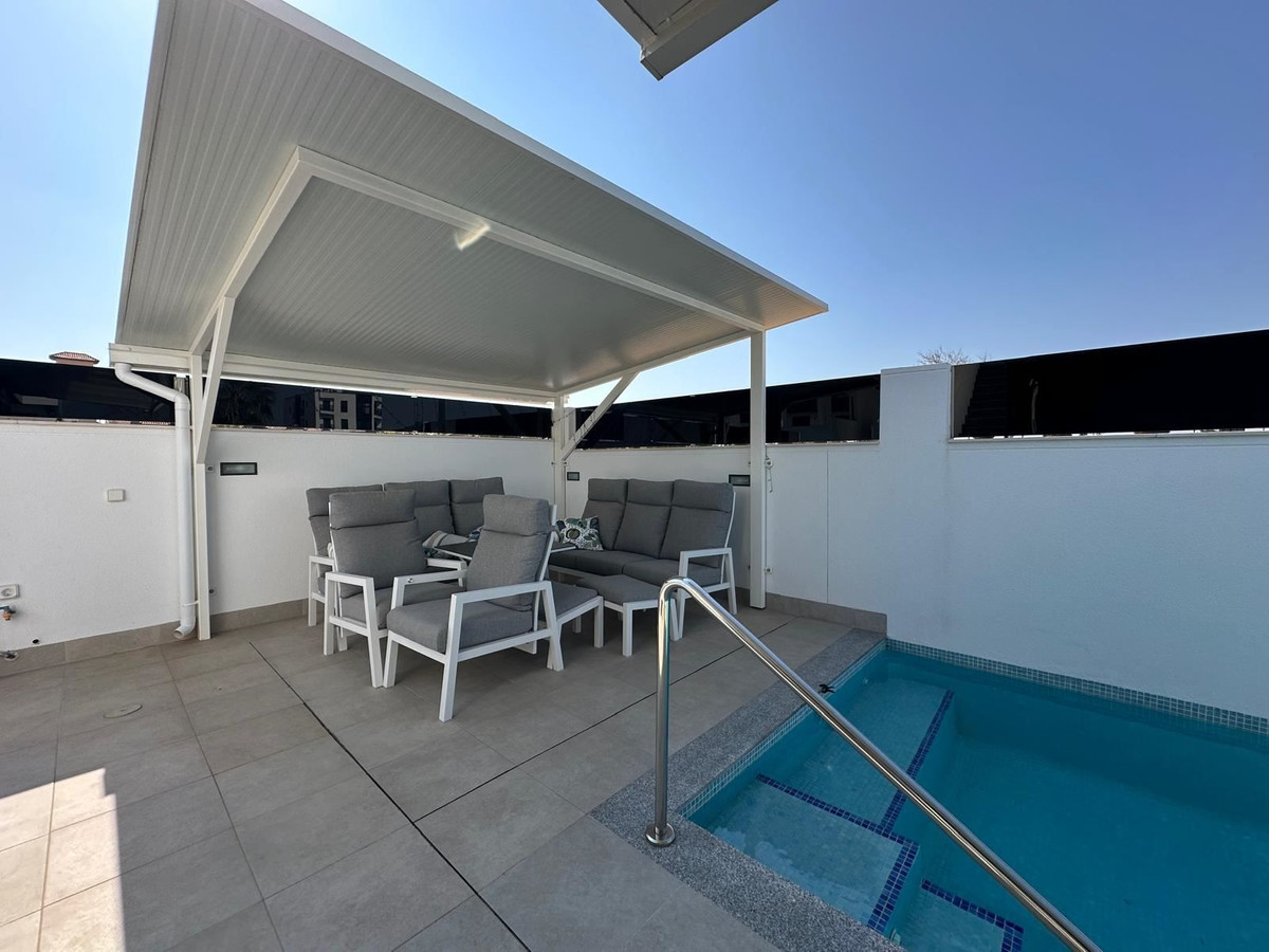 Modern villa with heated pool, solarium and evening sun In a quiet and popular neighborhood in San Pedro del Pinatar, where quiet streets meet the sea breeze and the Spanish sun warms well into the evening, a modern and elegant villa awaits you that combines space, comfort and a top-class outdoor living. Here you live in a stylish home where both the interior and exterior were renovated in 2025 - a home that feels new, well thought out and ready to be enjoyed from the first moment.