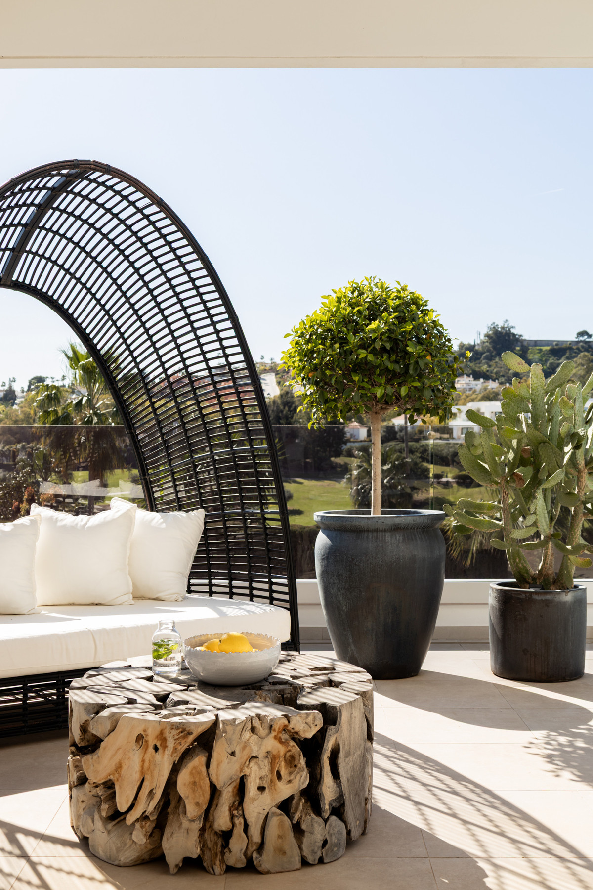 Four spacious bedrooms, including a tranquil master suite with direct terrace access, offer comfort and privacy, while a dedicated entertainment level with a wine bodega adds an exclusive touch. A private garage and driveway complete this exceptional home, where contemporary design meets the timeless appeal of Marbella's most sought-after golf setting.