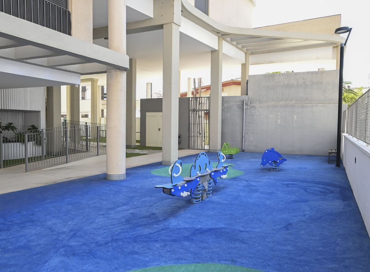 Modern duplex apartment with a side sea view, located close to a beautiful sandy beach in Calpe. The property belongs to a gated complex with a communal swimming pool and a children's playground, situated in the city center near all amenities.