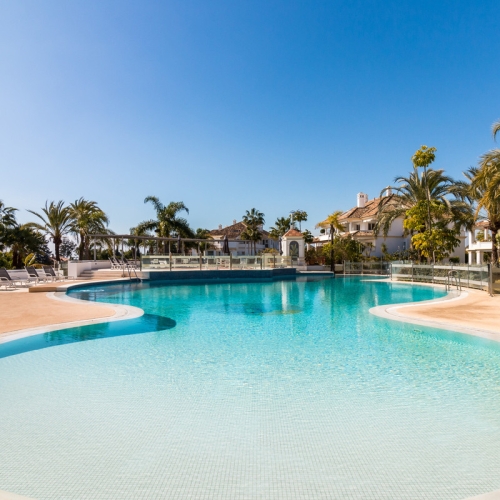 Located in Marbella's prestigious Golden Mile, this elegant apartment offers a rare combination of prime location, comfort, and Mediterranean lifestyle. Set within the sought-after Jardín del Mediterráneo community, it is just a short stroll from the beachfront promenade and within walking distance of Marbella's charming Old Town. Here, the শান্ত and privacy of a gated residential setting blend seamlessly with the vibrant social and culinary scene of beachfront restaurants, cafés, and chiringuitos.