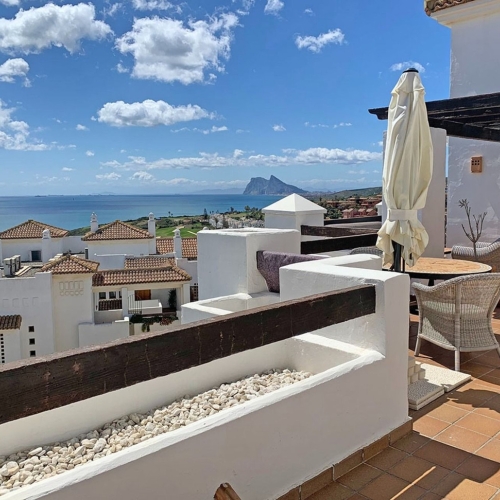 Discover this exceptional 112 m² apartment located in one of the most sought-after areas of La Alcaidesa, offering breathtaking panoramic views of the Mediterranean Sea and the iconic Rock of Gibraltar.