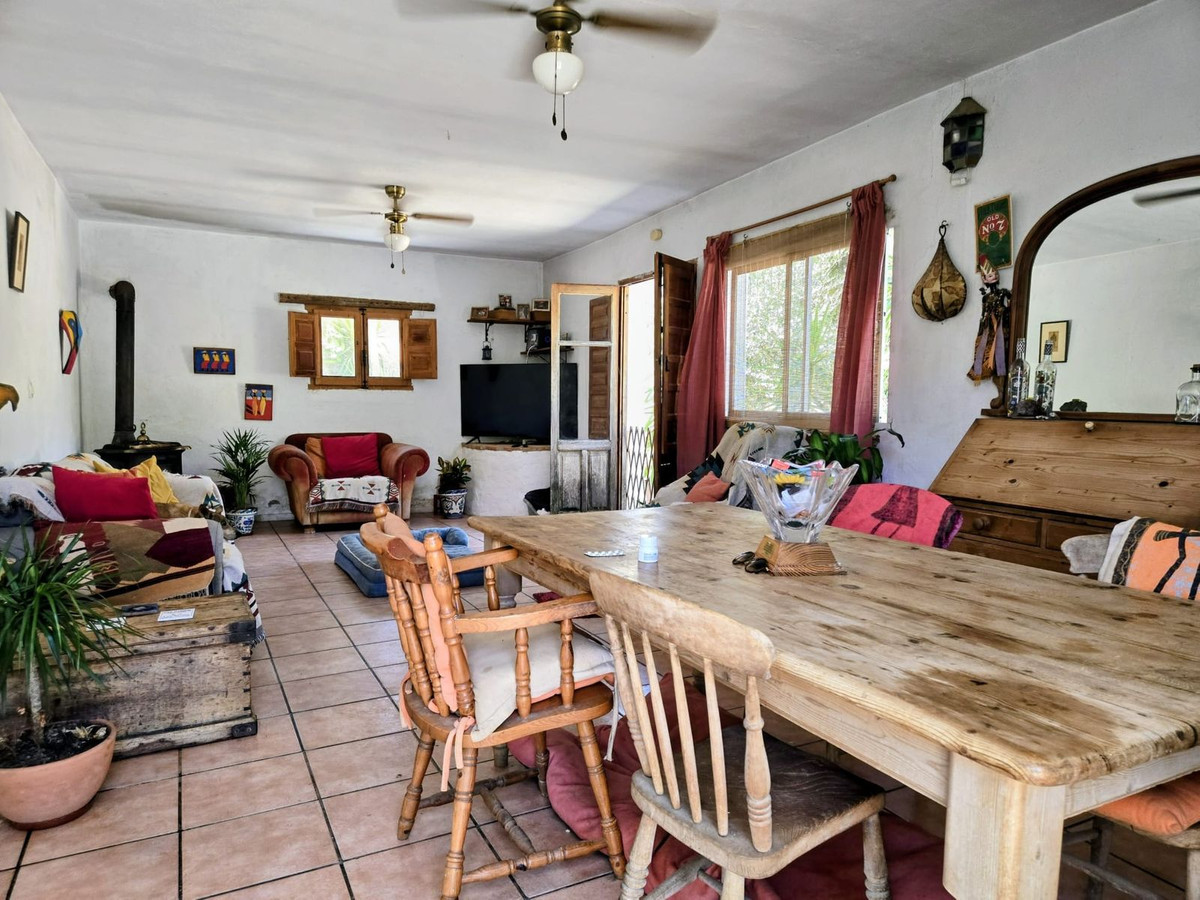 Tucked away in the countryside just outside Almogía, this charming end-of-terrace home (one of only three in the row) is made for quiet, rural living. The ground floor centres on a good-sized living/dining room with a cosy log burner. Double doors open to a fabulous outdoor kitchen-dining area—complete with BBQ, pizza oven and space for long, lazy meals around a large table. You'll also find three bedrooms, a shower room with walk-in shower, and a generous country kitchen with freestanding dressers and units.