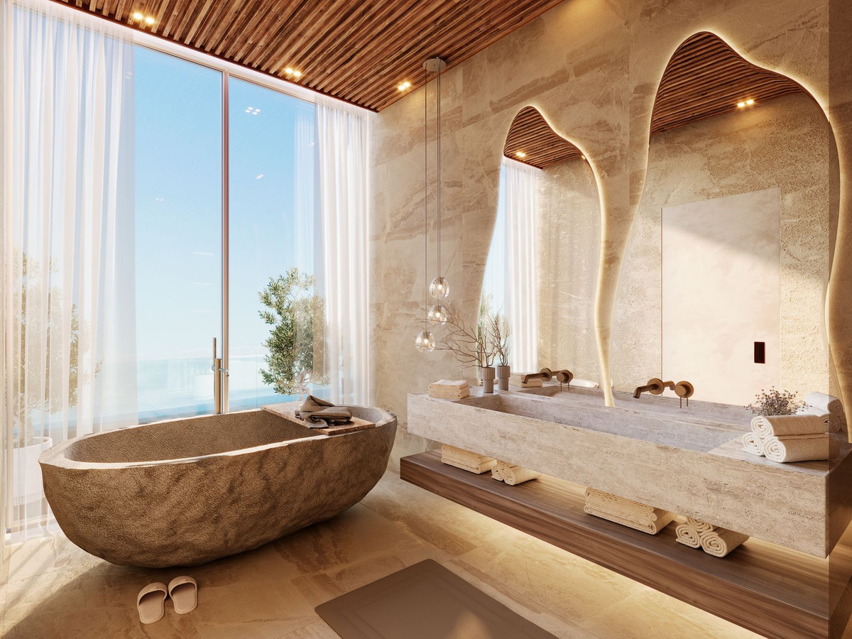 Sleeping area featuring several en-suite bedrooms with private walk-in closets, luxury bathrooms, and terraces with panoramic views.
