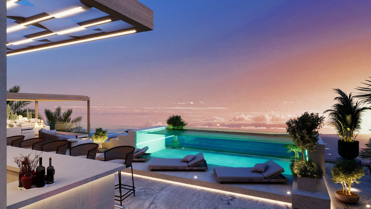 * Rooftop terrace with jacuzzi, bar, and chill-out area