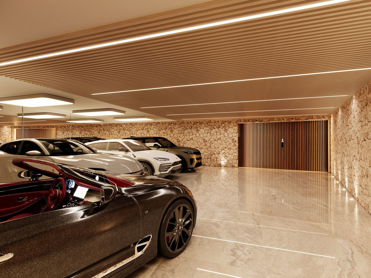 Spacious garage with capacity for up to 5 cars, designed for convenient and secure access.
