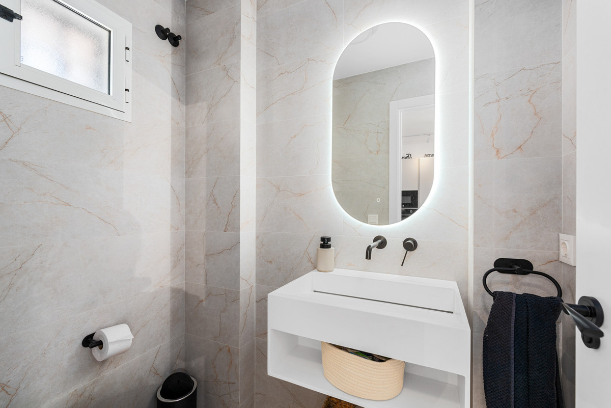 On the first floor, the property offers a luxurious master suite with en-suite bathroom, fitted wardrobes, and direct access to a private terrace. Two additional double bedrooms, both with fitted wardrobes, share a well-appointed family bathroom.
