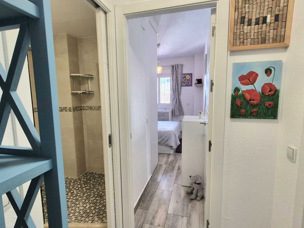 The entrance door to the building has been replaced with a modern glass entrance. It has mailboxes. Passing the elevator, you find the entrance to the parking garage. The apartment is very central, close to the A7 highway, schools, supermarkets, sports centers, medical centers, and local bus routes. Within walking distance to Fuengirola beach.