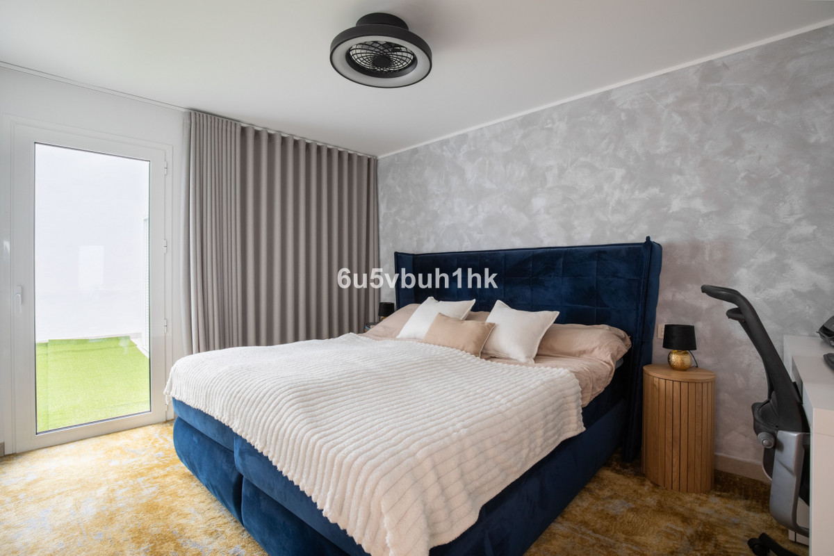 The lower level offers a rare feature for Spanish apartments — a large and welcoming hallway that enhances the feeling of a true home. Here you'll find three bright and spacious bedrooms. The master bedroom has an en-suite shower room and direct access to a private enclosed patio — a versatile space perfect for a sauna, gym, or shaded relaxation area. The other two bedrooms also enjoy sea views and share a modern shower room.