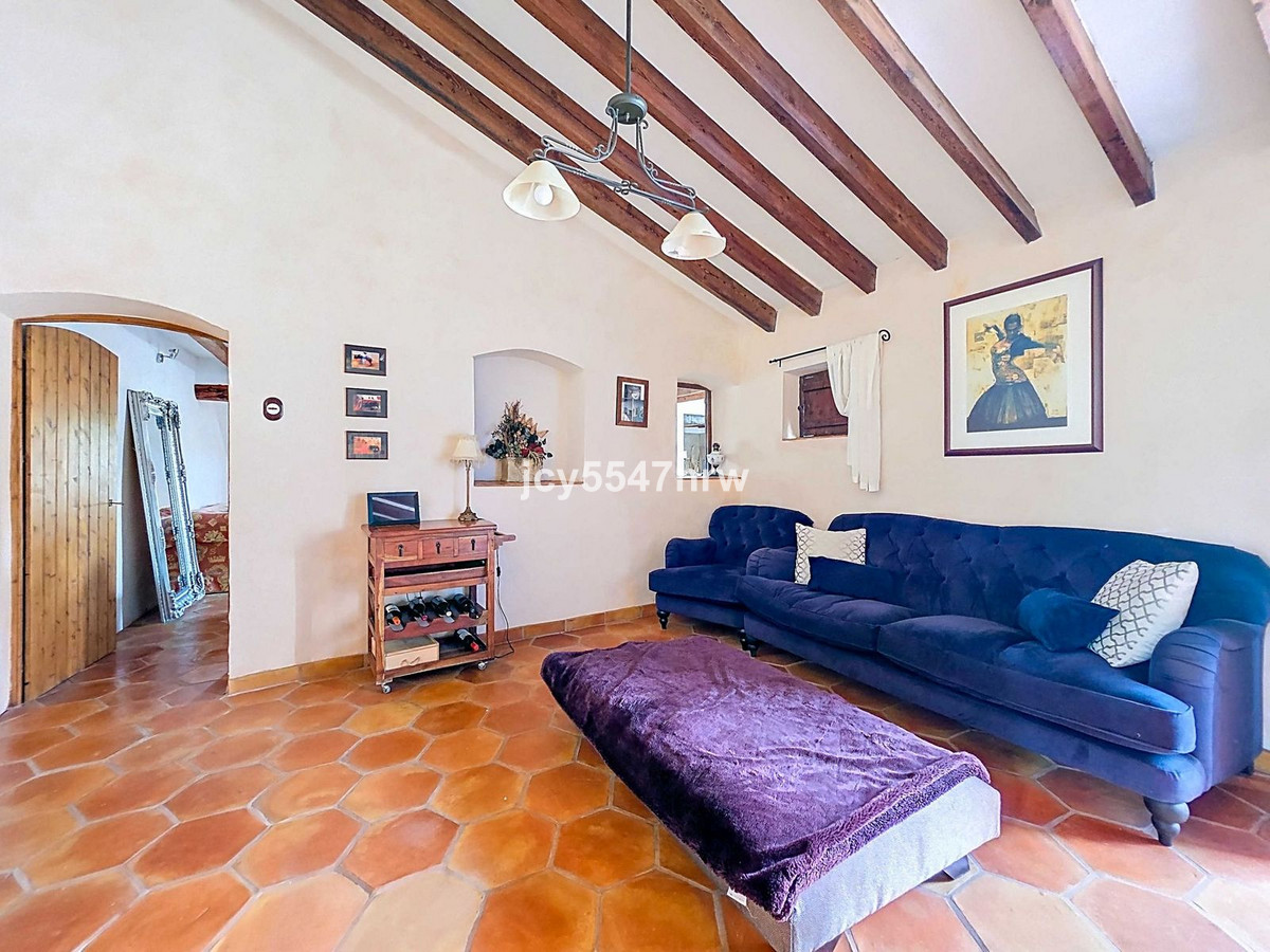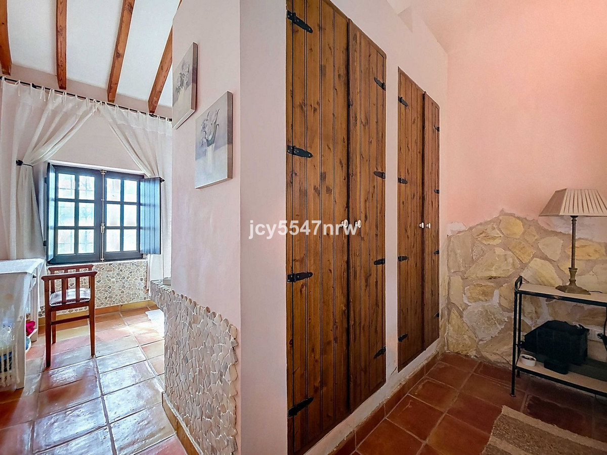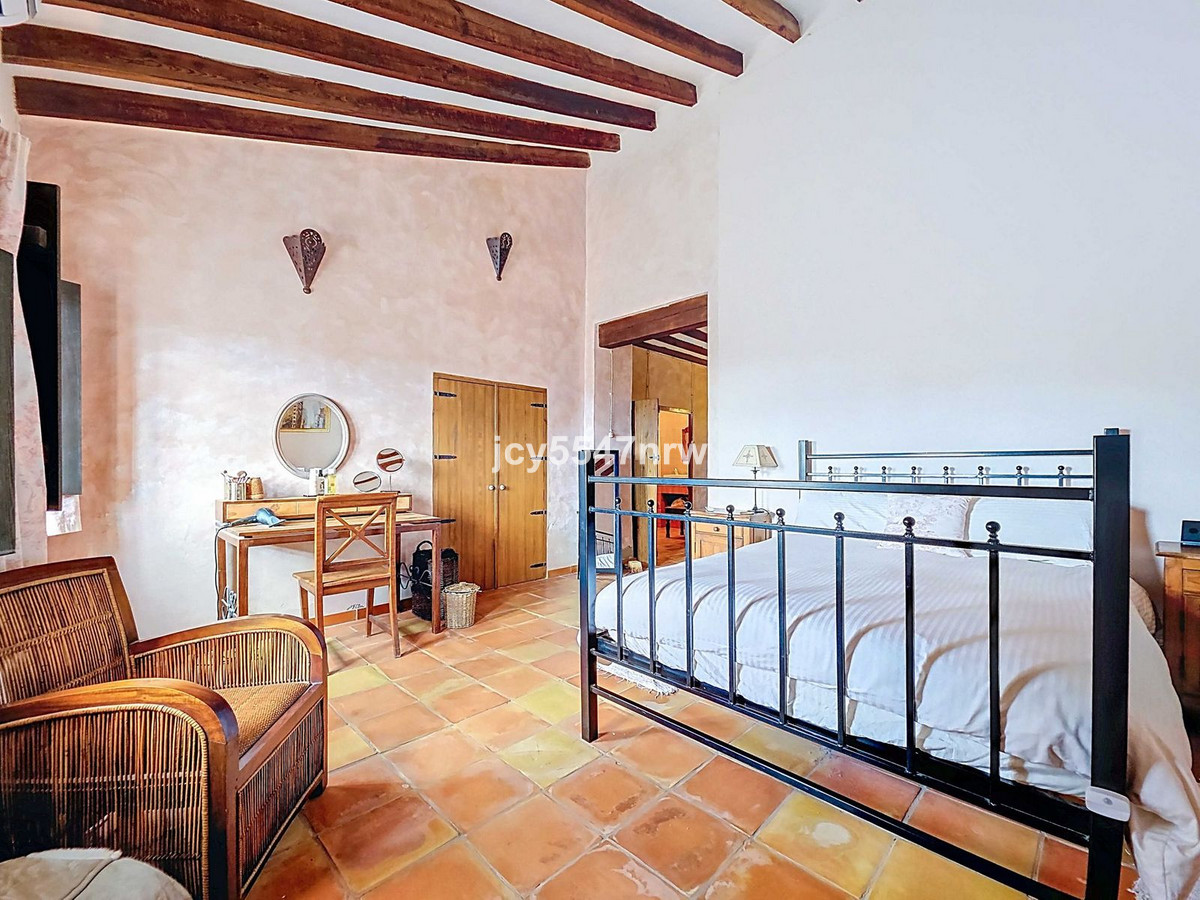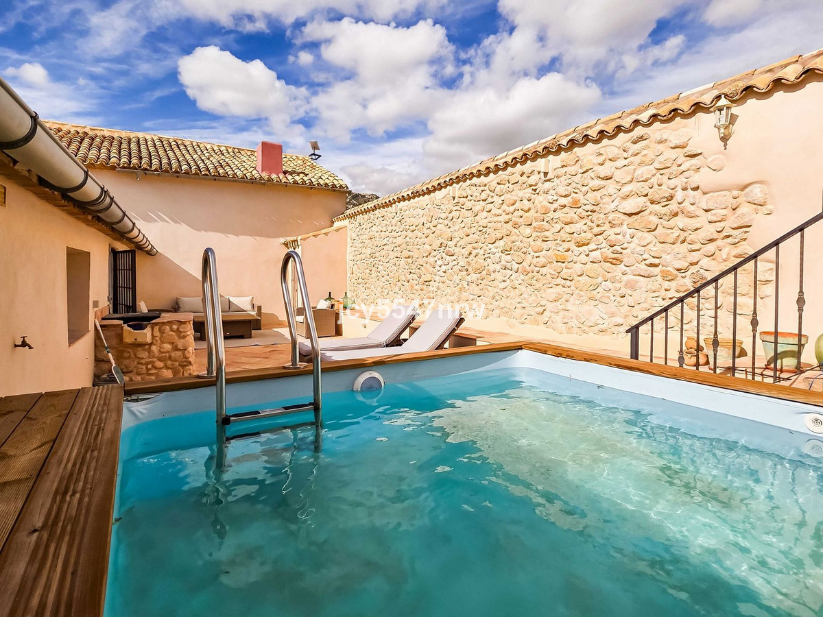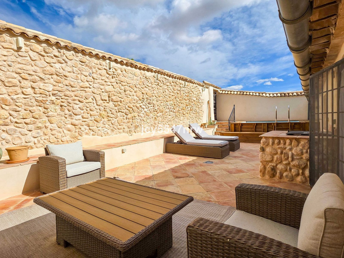 From the sitting area, there is access to both an upper and lower part of the house. The upper level houses a large family kitchen with a pantry and wood-burning stove, as well as access to the recently created outdoor area with a plunge pool — the perfect spot to enjoy the Spanish sun in complete privacy.