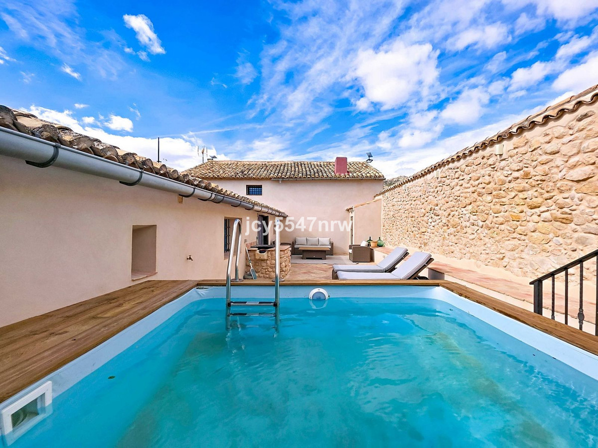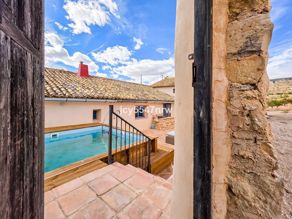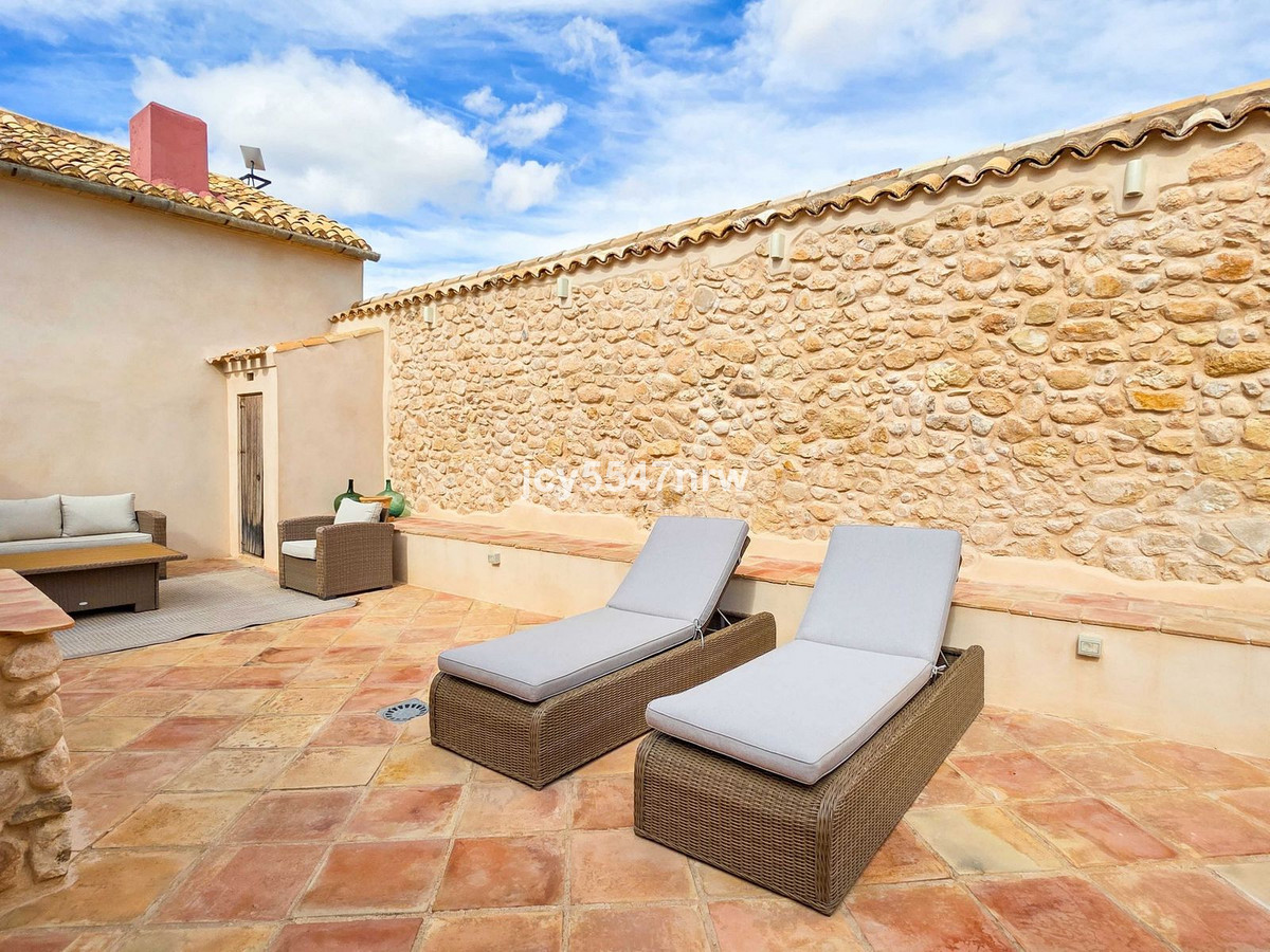 At the foot of the Sierra del Carche, surrounded by vineyards, almond and olive groves, stands this exceptional and spacious country house. Once a winery with stables, it has been lovingly restored by the family of the current owners using natural materials. Original antique floors, doors and architectural details have been preserved. Old terracotta tiles were reused, and nearly 150 wooden beams were restored, treated and nourished with natural oils.