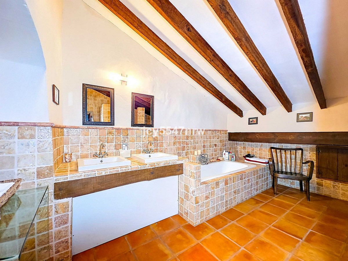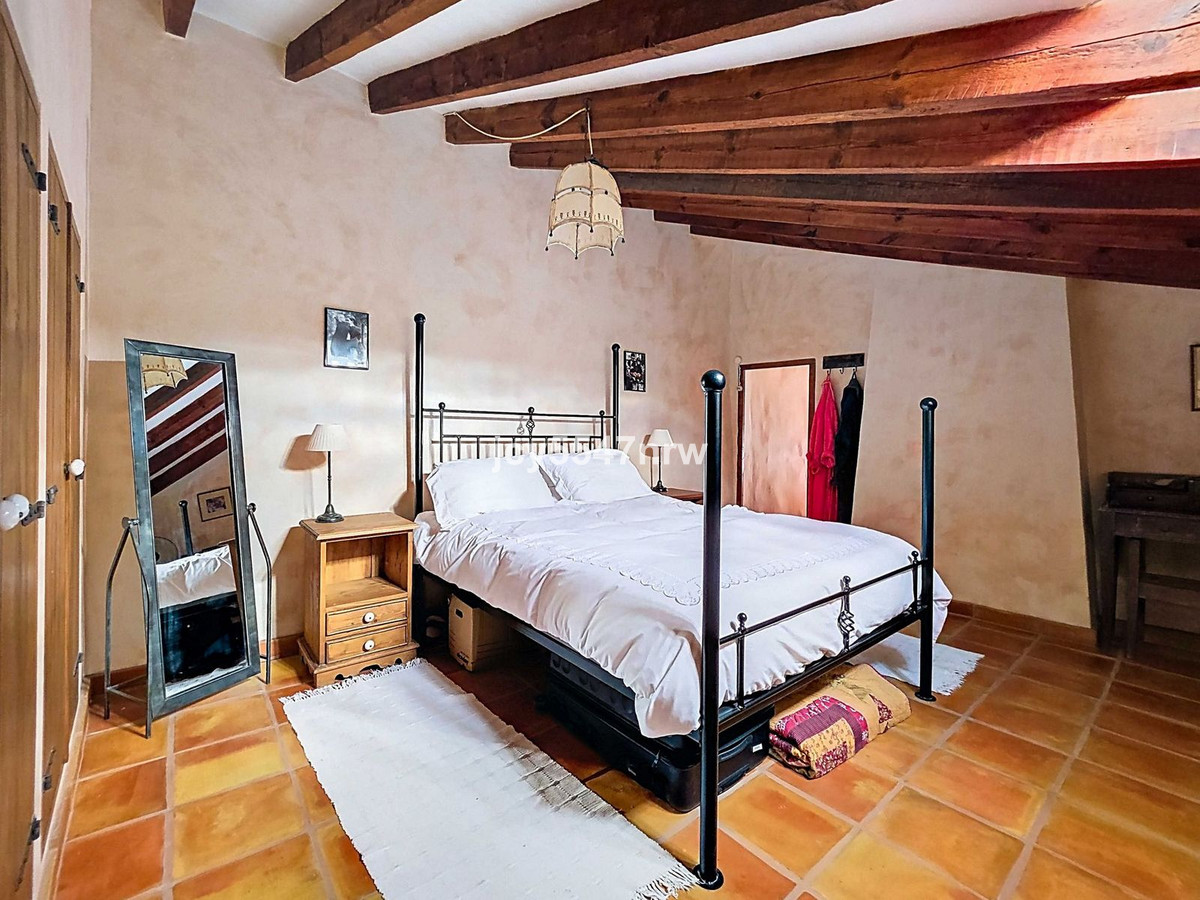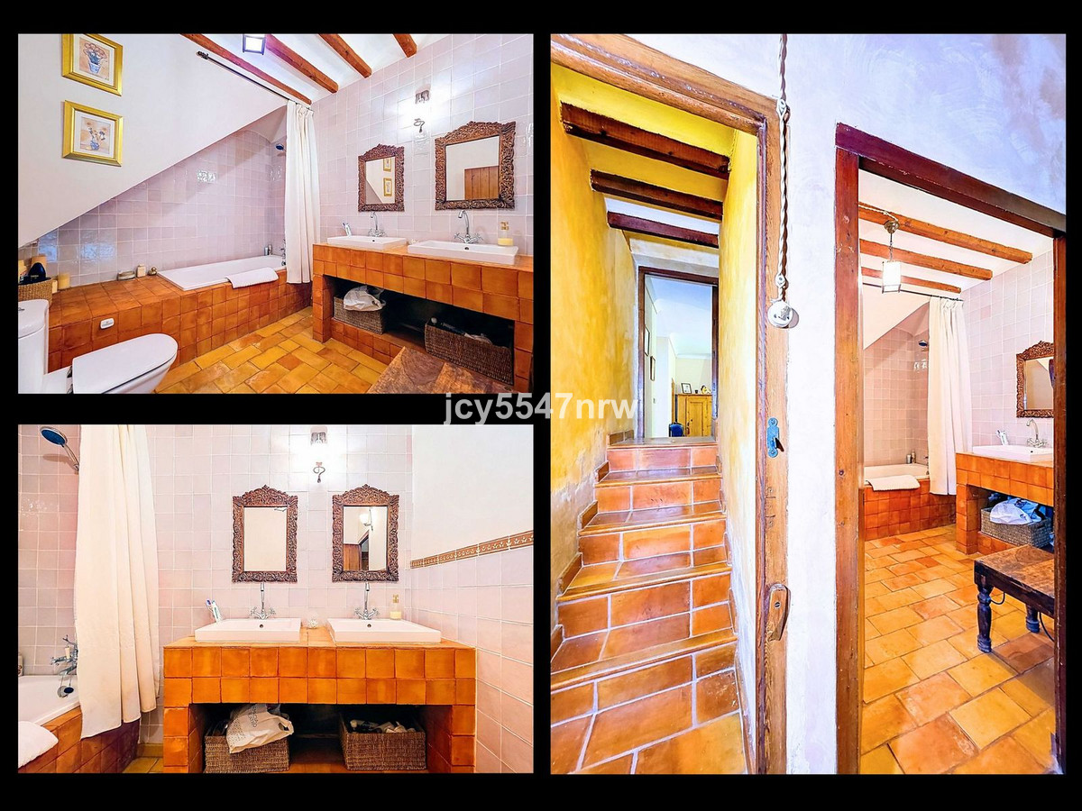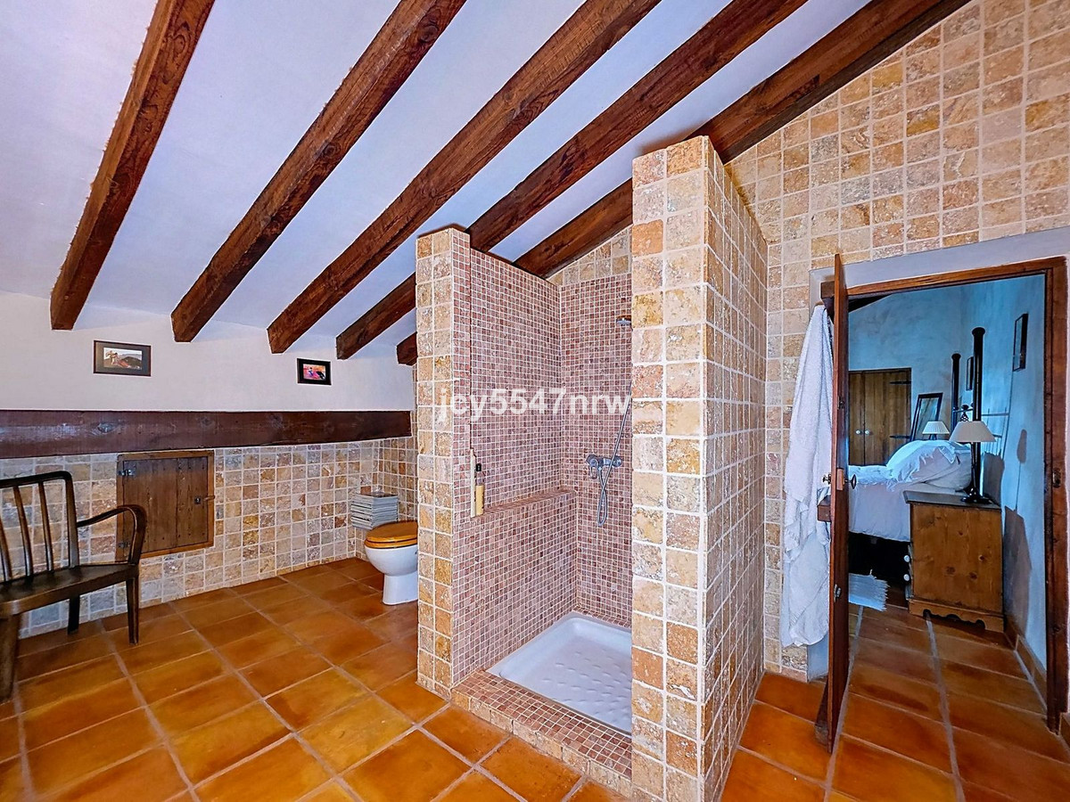 From the kitchen, a hallway and staircase lead to another bedroom with its own bathroom (with bathtub and shower). On the lower level (same as the entrance), there is a living room with a stove and even an original bread oven, a bedroom and another private bathroom.