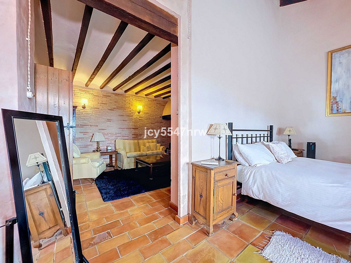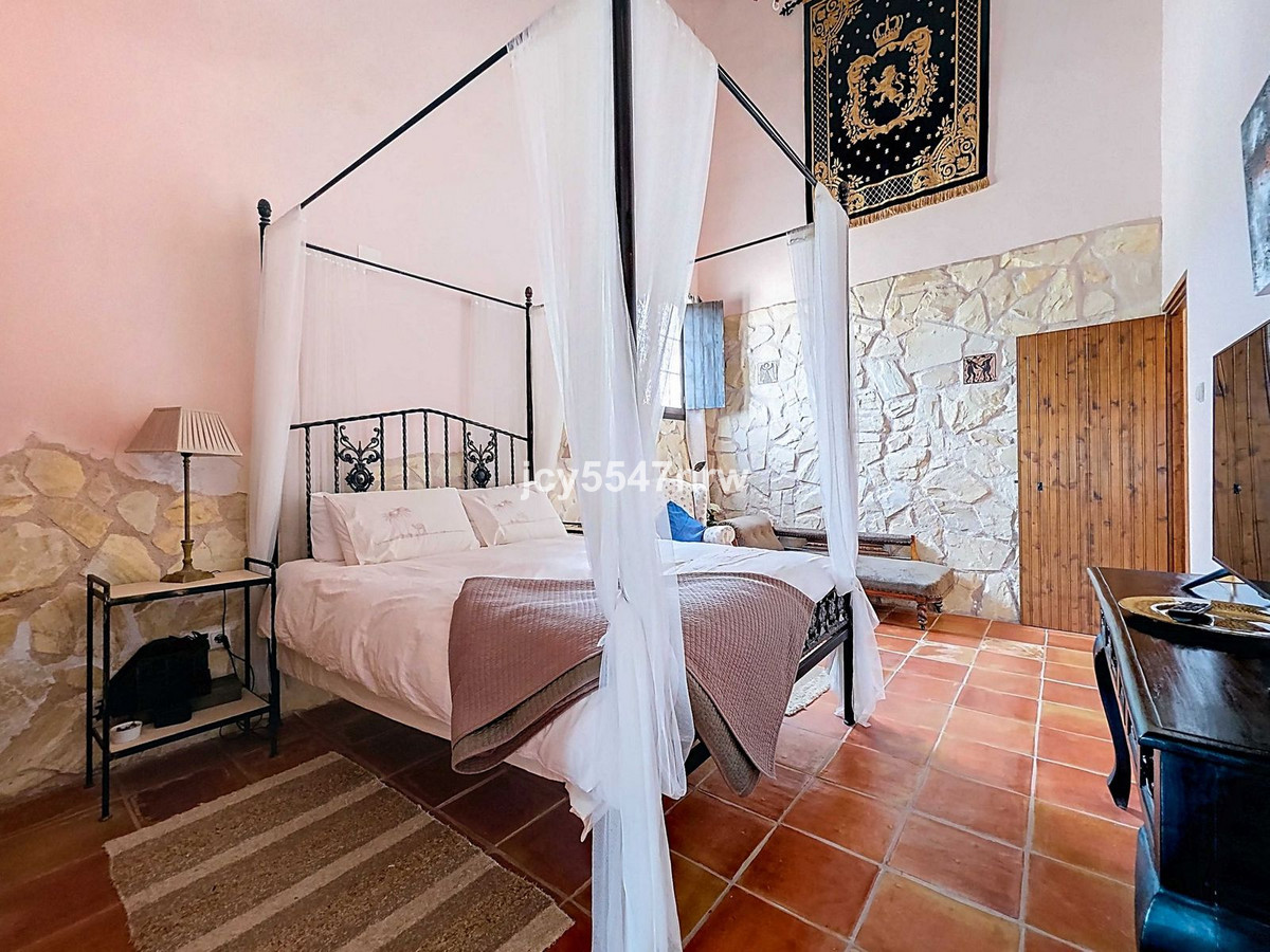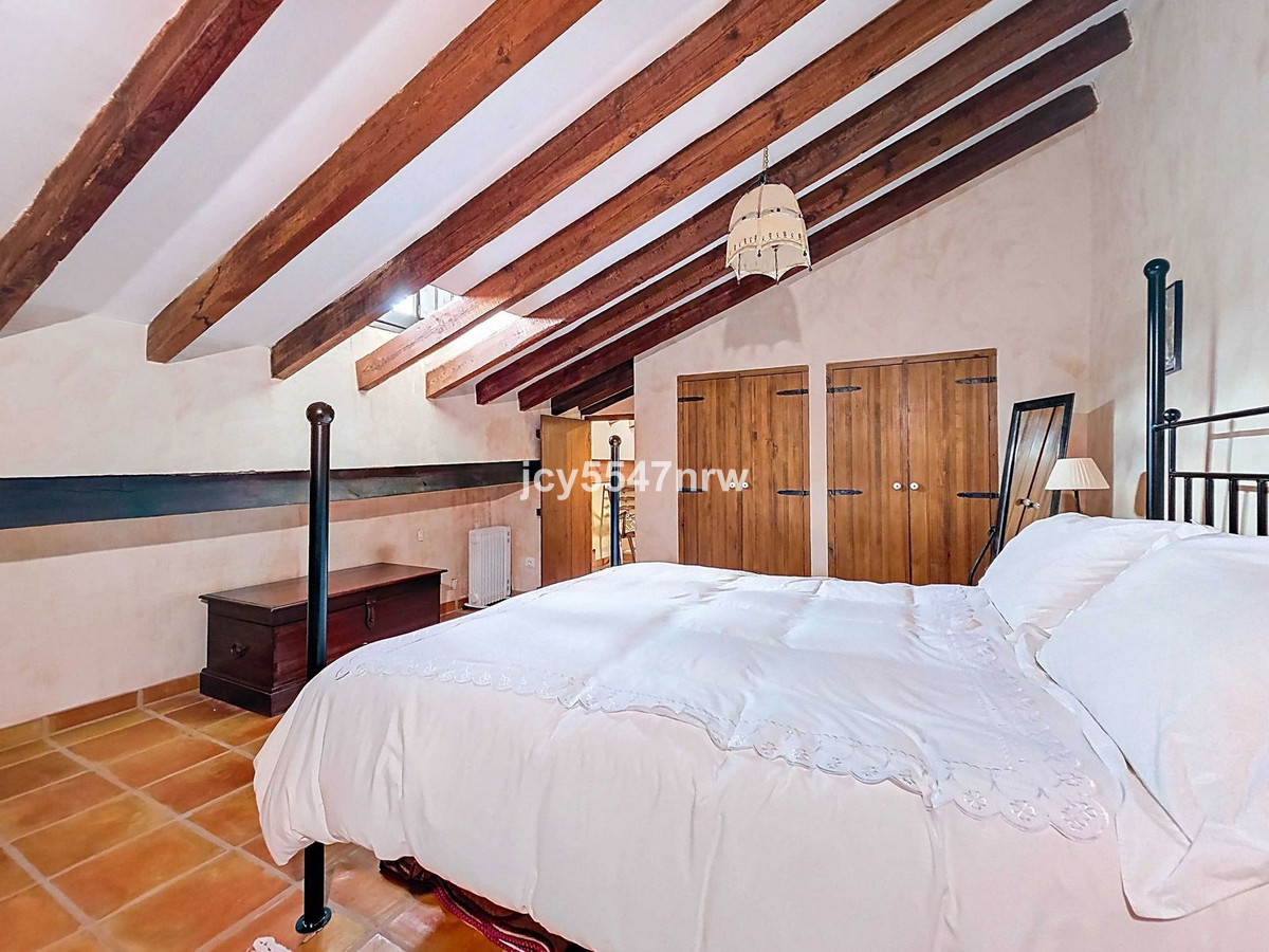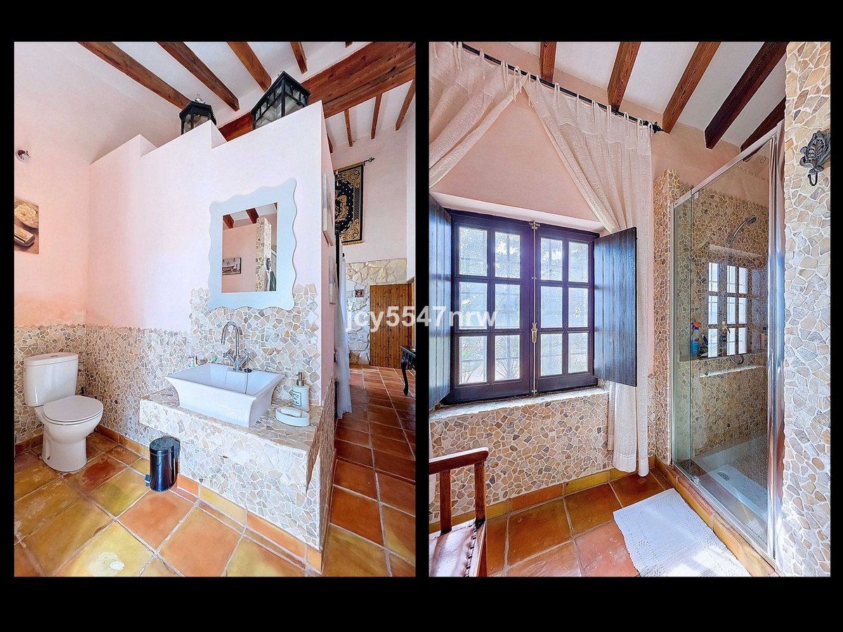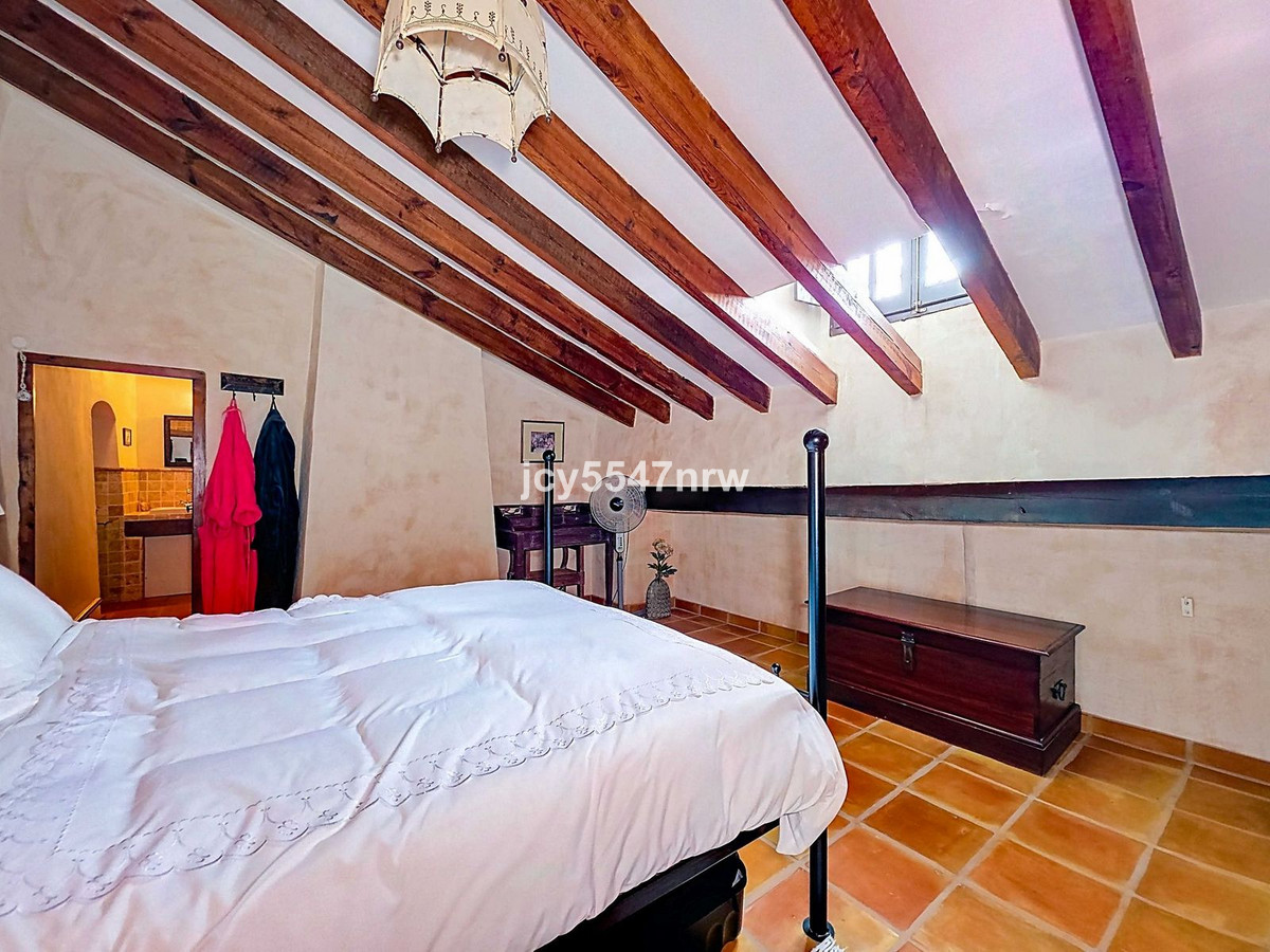 From the kitchen, a hallway and staircase lead to another bedroom with its own bathroom (with bathtub and shower). On the lower level (same as the entrance), there is a living room with a stove and even an original bread oven, a bedroom and another private bathroom.