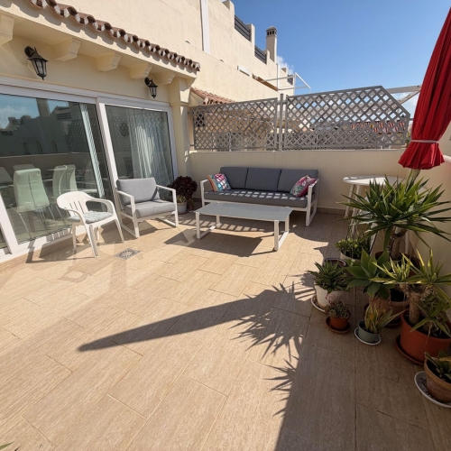 Town House for sale in , Mijas Costa with 5 bedrooms, 4 bathrooms and with orientation south/west, with private swimming pool, private garage (2 parking spaces) and private garden. Regarding property dimensions, it has 210 m² built and 140 m² terrace. Has the following facilities transport near, air conditioning, fully furnished, fully fitted kitchen, utility room, fireplace, basement, guest room, storage room, solarium, double glazing, barbecue, guest toilet, private terrace, kitchen equipped, living room, study room, separate apartment, sea view, bars, laundry room, internet - wi-fi, covered terrace, fitted wardrobes, garden view, pool view, panoramic view, close to children playground, close to sea / beach, close to golf, uncovered terrace, glass doors, balcony, excellent condition, ceiling cooling system, close to shops, close to town, close to schools, guest apartment, office room and pets allowed.