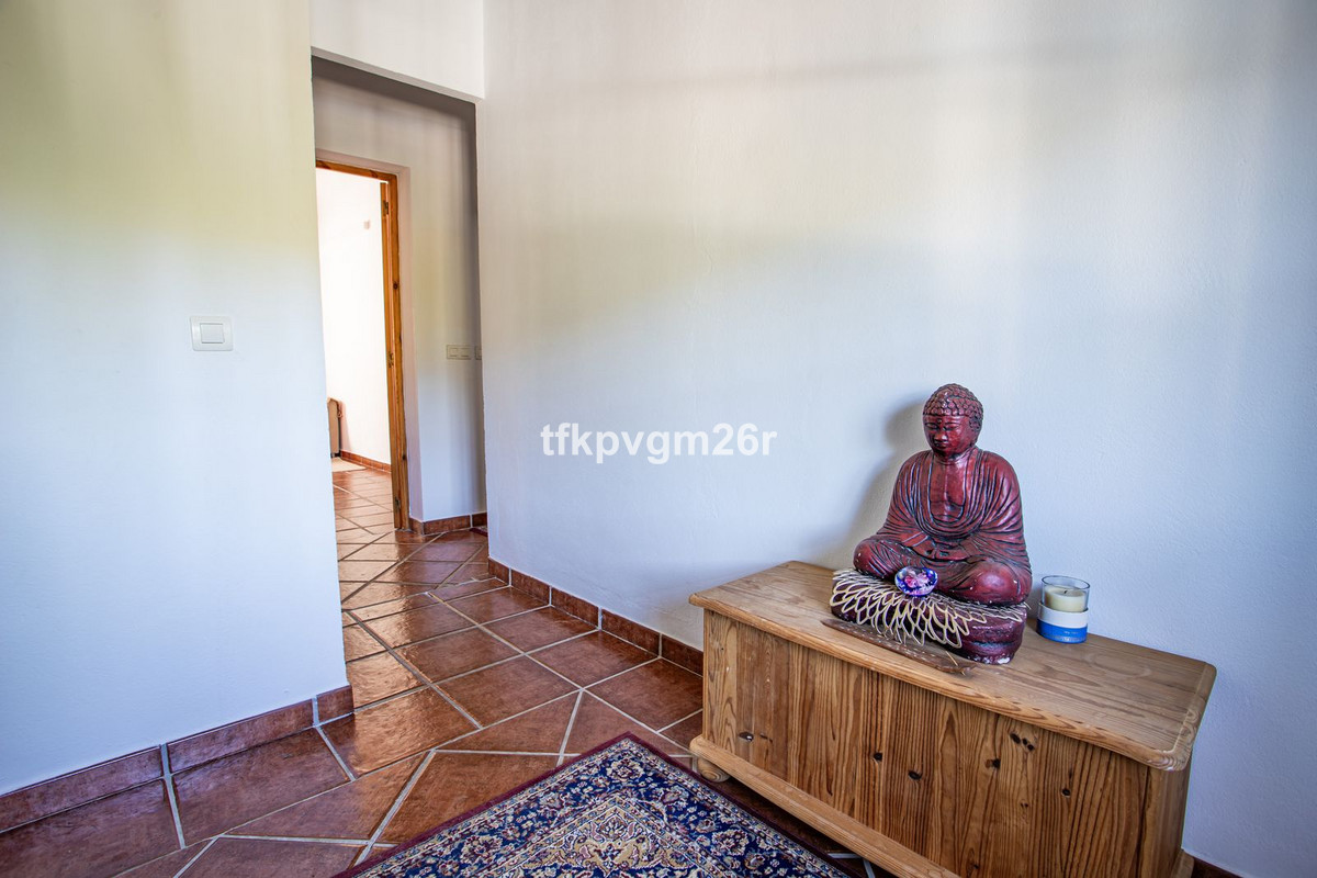 Singular opportunity to buy a country property on the outskirts of San Pablo de Buceite in the borough of Jimena de la Frontera. This 2 bed 2 bath home is on two floors with terraces and beautifully manicured gardens. There is also a fabulous swimming pool and BBQ zone. Enjoy being in the heart of Los Alcornocales in a country lane surrounded by avocado fields, 500m from the river Guadiaro; ideal location for humans and pets alike. The plot is walled and fenced and has a double sized metal gate. Once inside there is a garage and storage area past a stunning, pristine pool that begs you to swim in it. The house itself is set on two storeys with bedrooms upstairs. The principal bedroom has its own study area and a large terrace with splendid views looking west. At that special cocktail hour, sunsets defy description and life feels perfect. Downstairs, the dining room leads off from the kitchen and sitting room for indoor living all year round. The garden is designed with a wonderful sense of proportion and space. There are fruit trees and meticulously pruned bushes amidst an easy to maintain paved back drop and small tiered bank. This outdoor living space is ideal for entertaining friends and family or just to switch off from life's pressures and listen to the birds as the barbecue cooks your food.