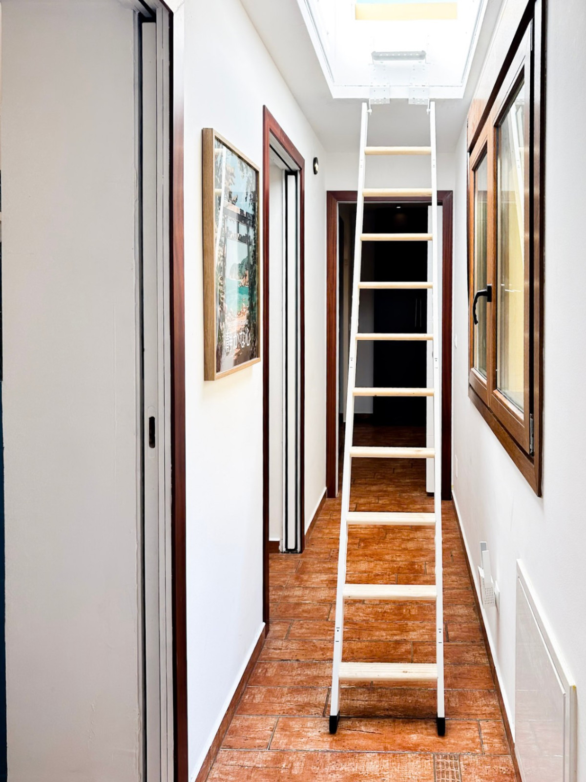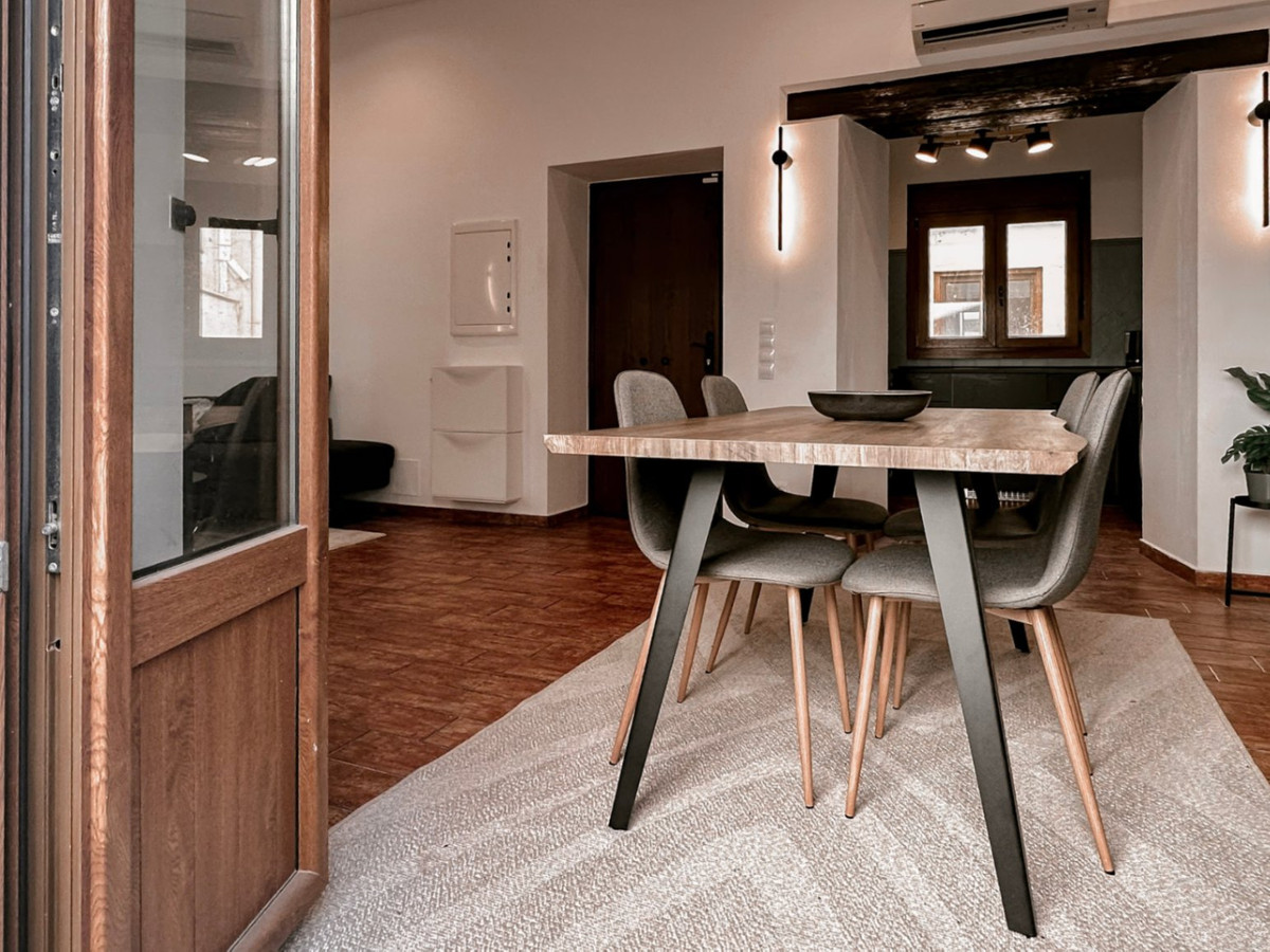 The renovation combines warm, natural materials with clean Scandinavian lines, preserving the traditional character of Málaga's architecture. For added comfort, the apartment includes underfloor heating and air conditioning in both the living room and bedrooms.