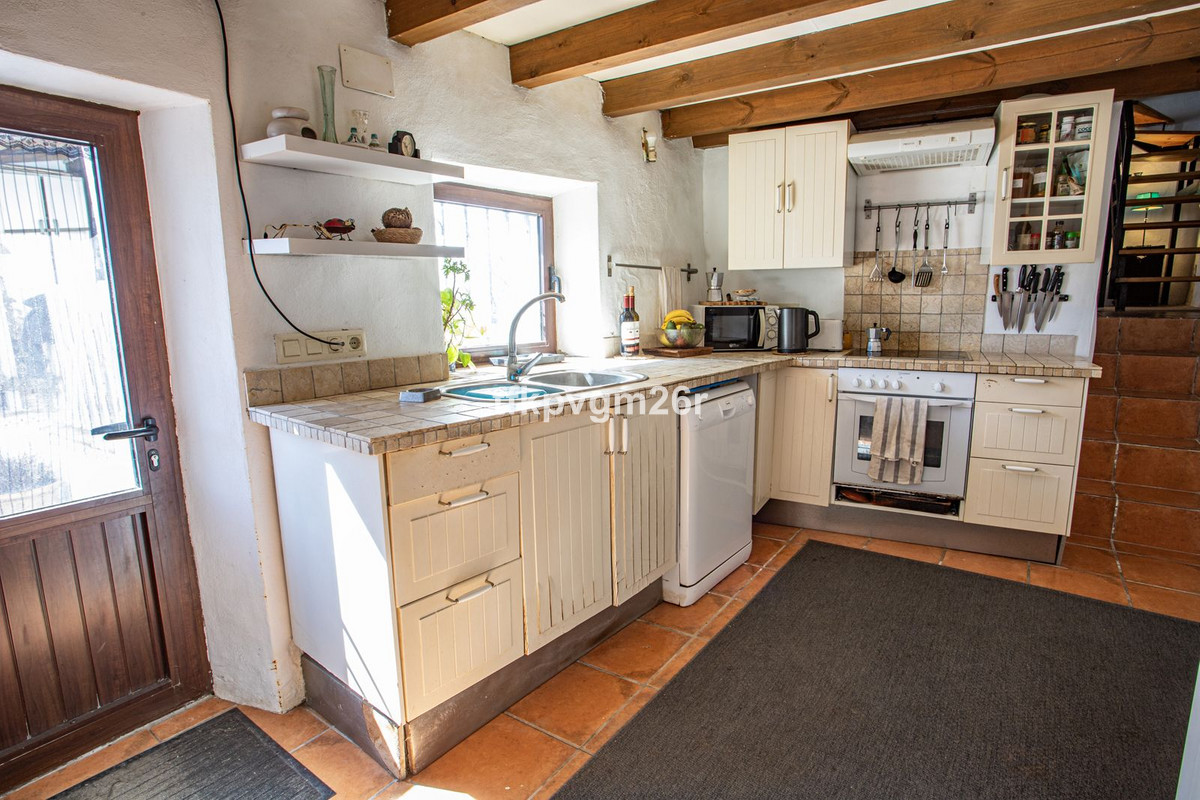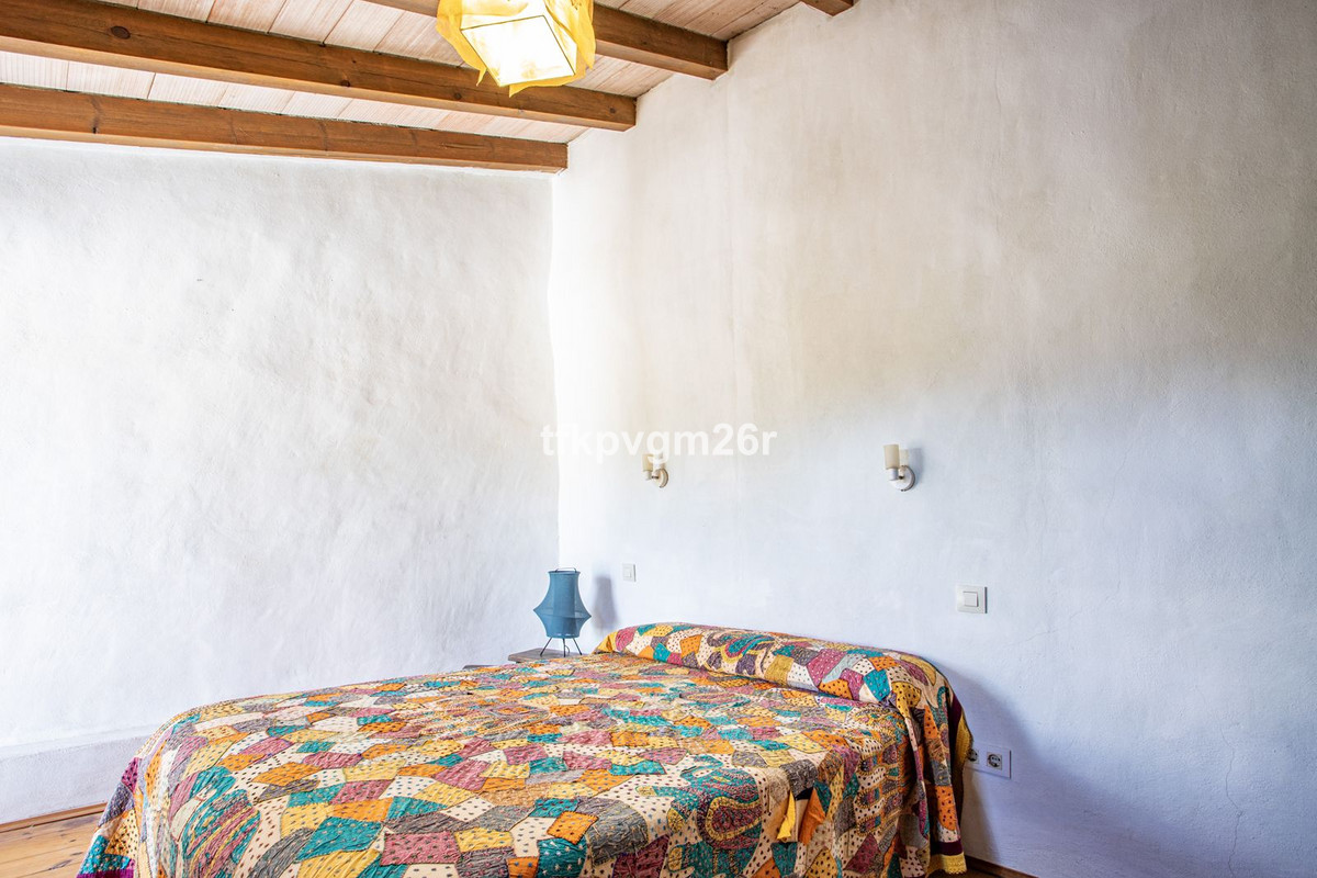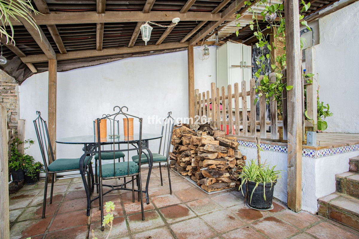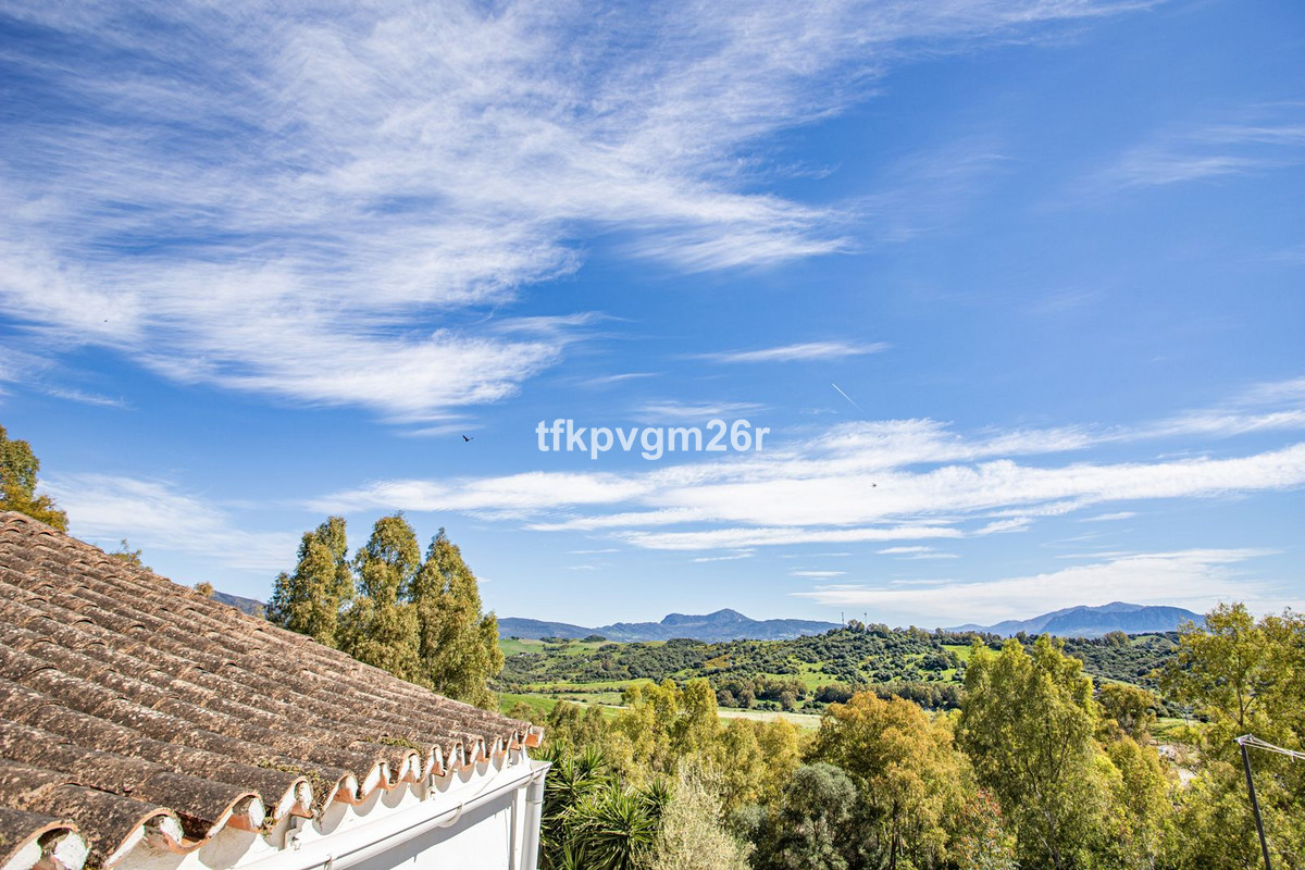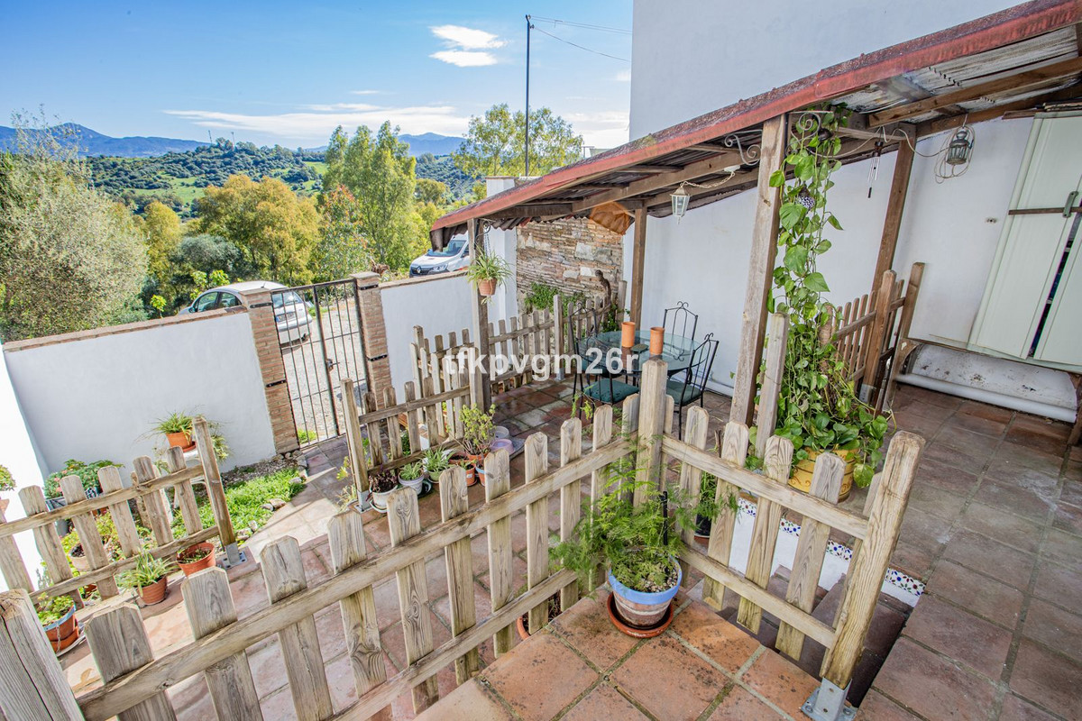 Jimena de la Frontera. Fabulous 2 bed 2 bath town house with south east facing patio and garden. Walking distance to restaurants, banks, and shops. Parking bay outside house at the back of the property via a small drive way. Once parked, there is a gated and walled entrance to the tiered garden and patio. Kitchen and sitting room each have French windows opening out onto the outdoor area. On this floor there is also a bathroom and a small corridor leading to the front door which is never really used. This space makes an ideal storage area for ironing board etc and is where the fuse cupboard is. There are two bedrooms upstairs, one with its own en suite. Each bedroom has its own staircase which gives better privacy for each of the rooms. The views are superb and once parked there is no need to get back into the car to go to restaurants and bars.