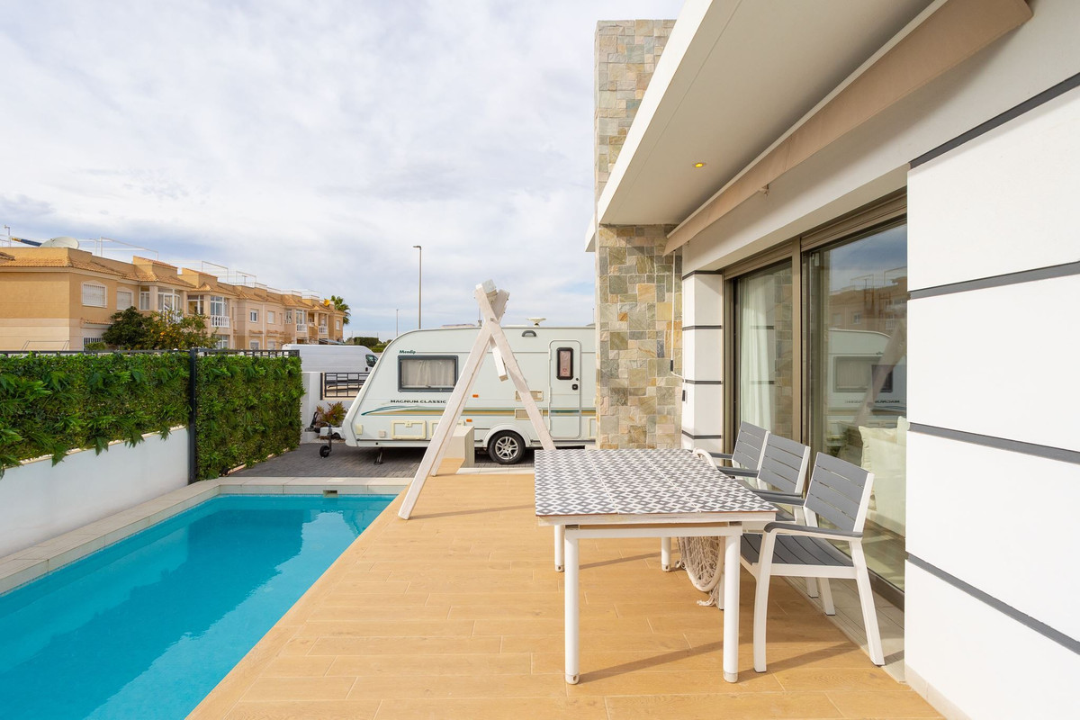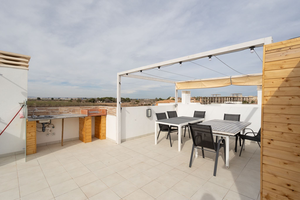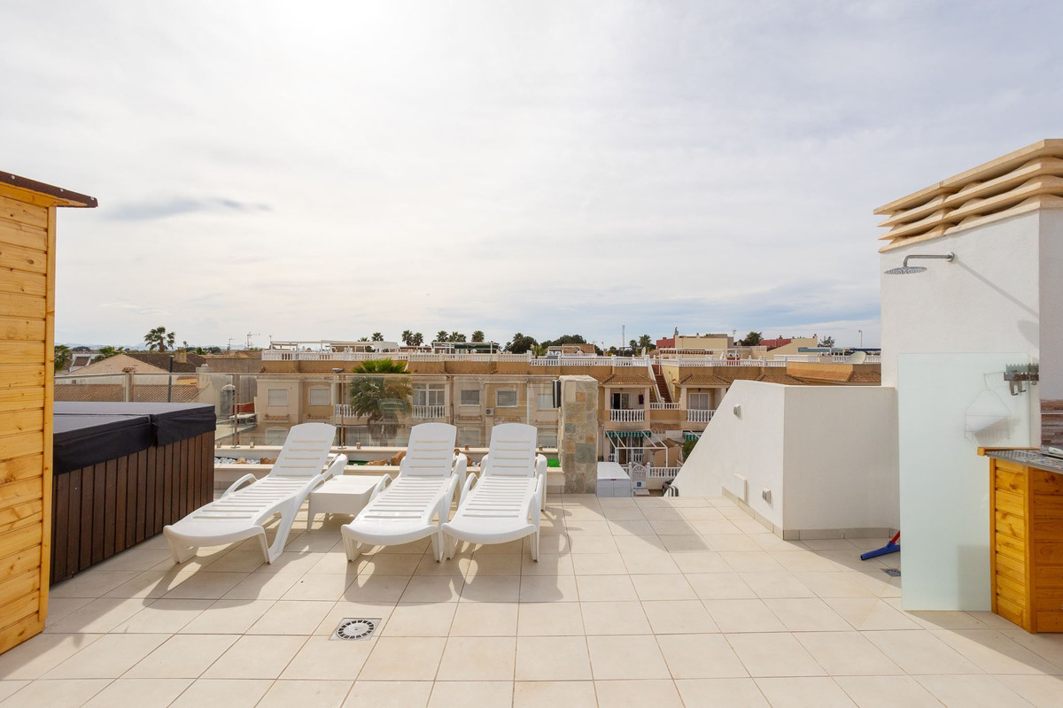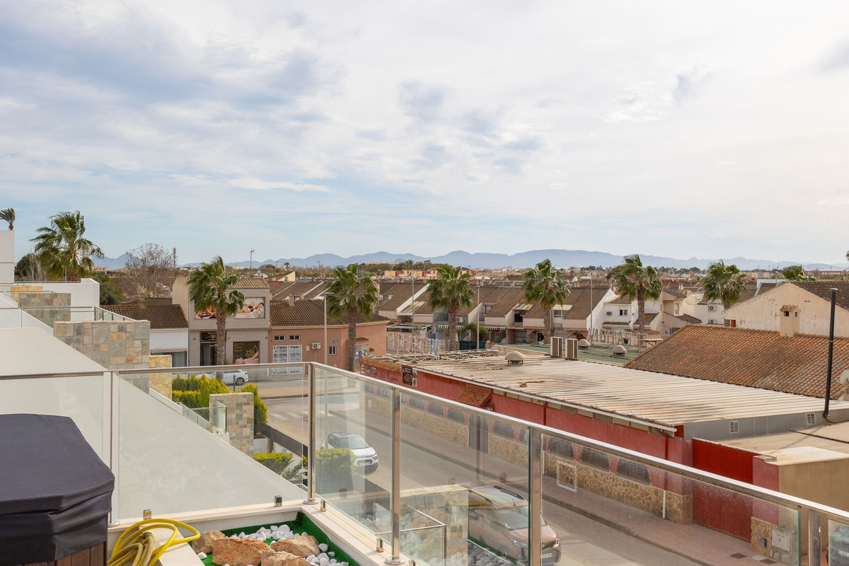Villa with private pool and roof terrace in popular area A warm welcome to this modern property located in the attractive area of Los Alcázares on the Costa Calida. This villa has four bedrooms, three bathrooms, an open plan living room and kitchen, a terrace and a roof terrace. On the plot there is a private pool in a nice location. This is a stylish property that you will be happy to call your home in Spain!